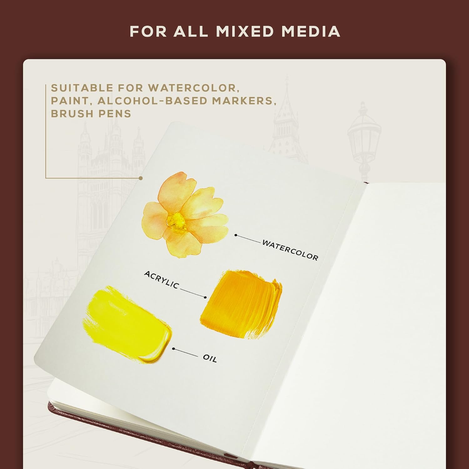- Ultra-Thick 300 gsm Paper – Industry-Leading Strength – Handles heavy watercolor washes, gouache, ink, alcohol markers & mixed media with zero bleed-through buckling, outperforming 160-200 gsm rivals.