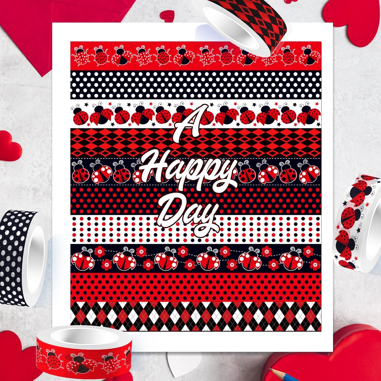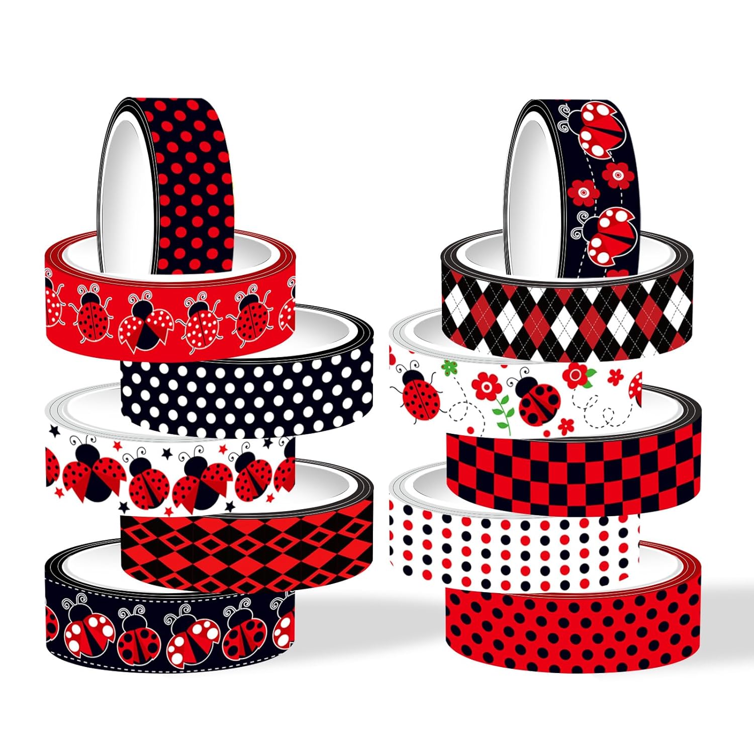 - UNIQUE & EXQUISITE DESIGN: You will receive a set of 12 rolls of ladybug-themed masking tape designed. The patterns include ladybugs, leaves, polka dots, plaids, and other elements, with red, white, and black as the color base. This set of insect tape takes you into a fairy tale fantasy world and brings you and your family a colorful and dynamic artistic life.