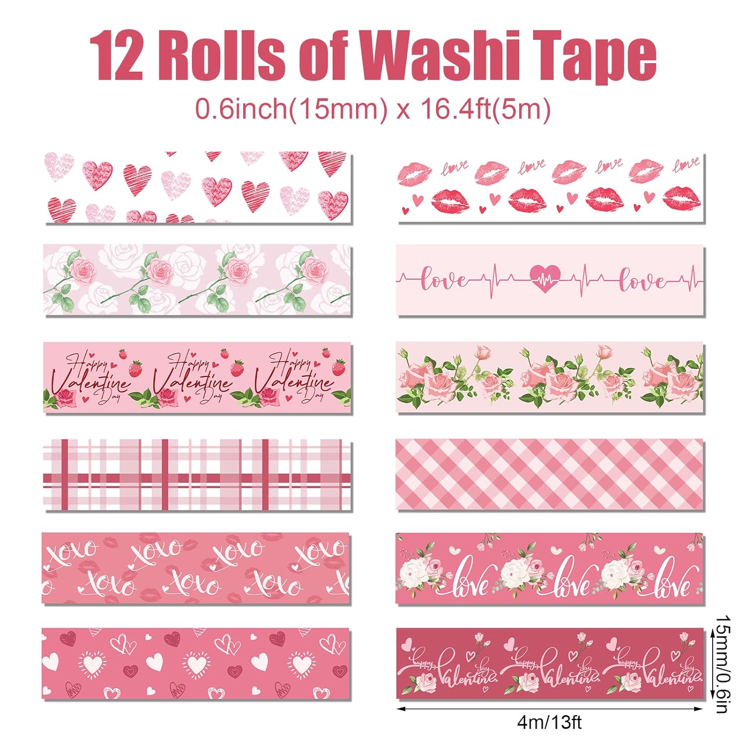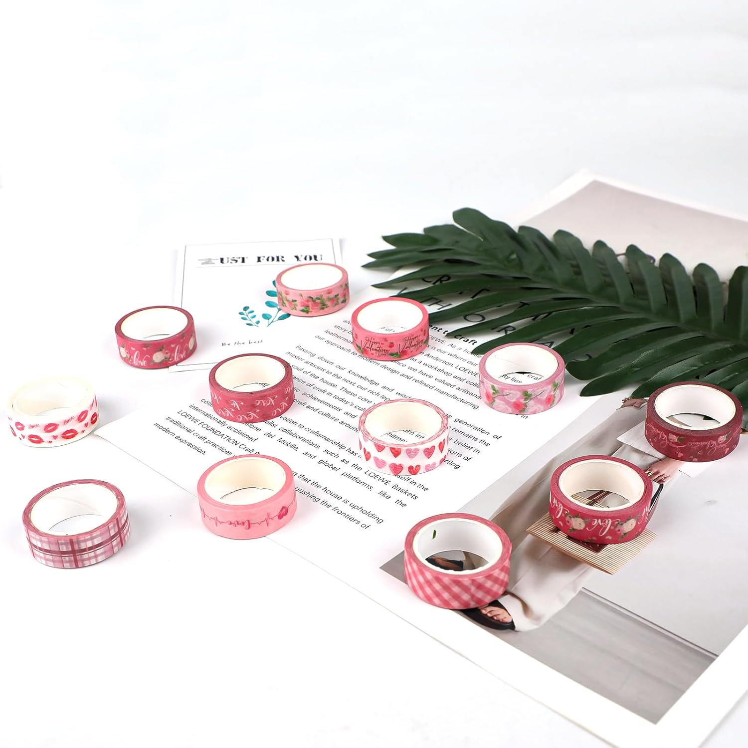 - VALUE PACKAGE: You will get 12 rolls of red and pink heart-themed washi tapes, featuring a variety of sweet pink patterns, perfect for your arts, crafts, and gift wrapping needs.