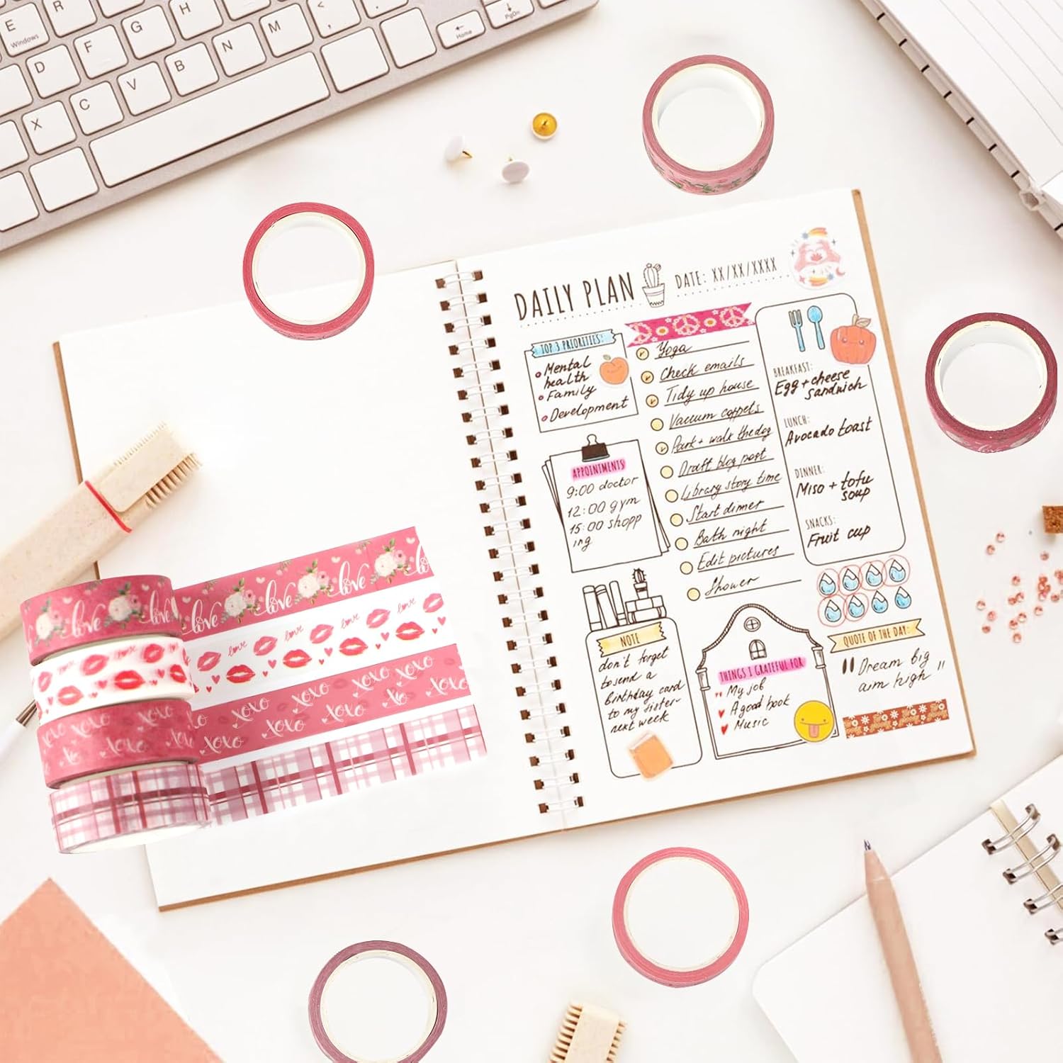 - UNIQUE & EXQUISITE DESIGN: Our washi tapes feature red and pink as theme colors, with patterns including sweet roses, hearts, love symbols, plaids, and more. Their cute and sweet design makes them perfect for Valentine's Day, weddings, and birthdays.