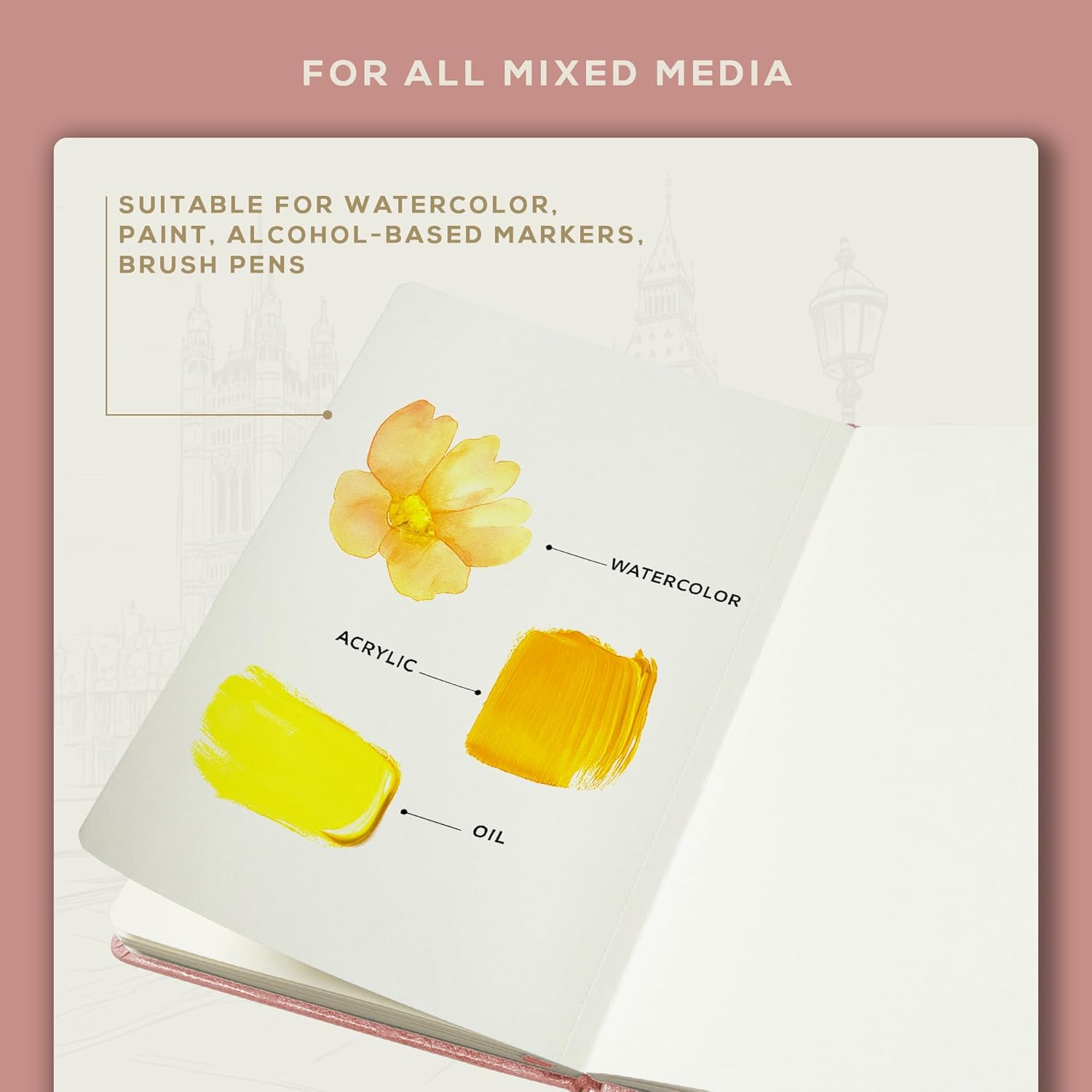 - Ultra-Thick 300 gsm Paper – Industry-Leading Strength – Handles heavy watercolor washes, gouache, ink, alcohol markers & mixed media with zero bleed-through buckling, outperforming 160-200 gsm rivals.