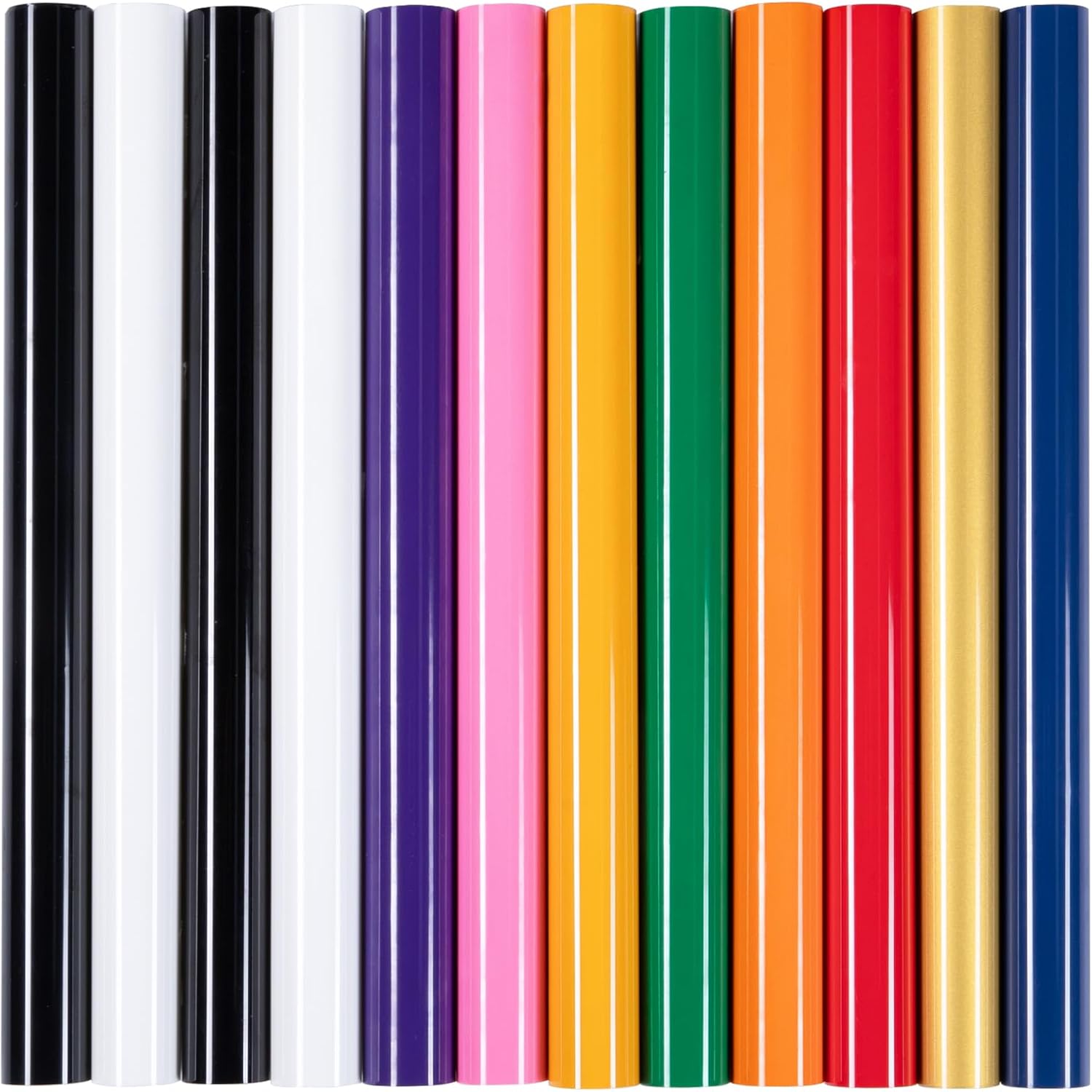 - 【Vibrant Colors for Every Project】Our HTV vinyl bundle features 10 vibrant colors plus 1 Teflon sheet, including black*2, white*2 , red*1, orange*1 , pink*1, green*1 , royal blue*1 , gold*1 , purple*1, yellow*1 , and 1 Teflon sheet, along with 1 Teflon sheet. Whether you're personalizing T-shirts or creating gifts, these vibrant shades make it easy to bring your ideas to life.