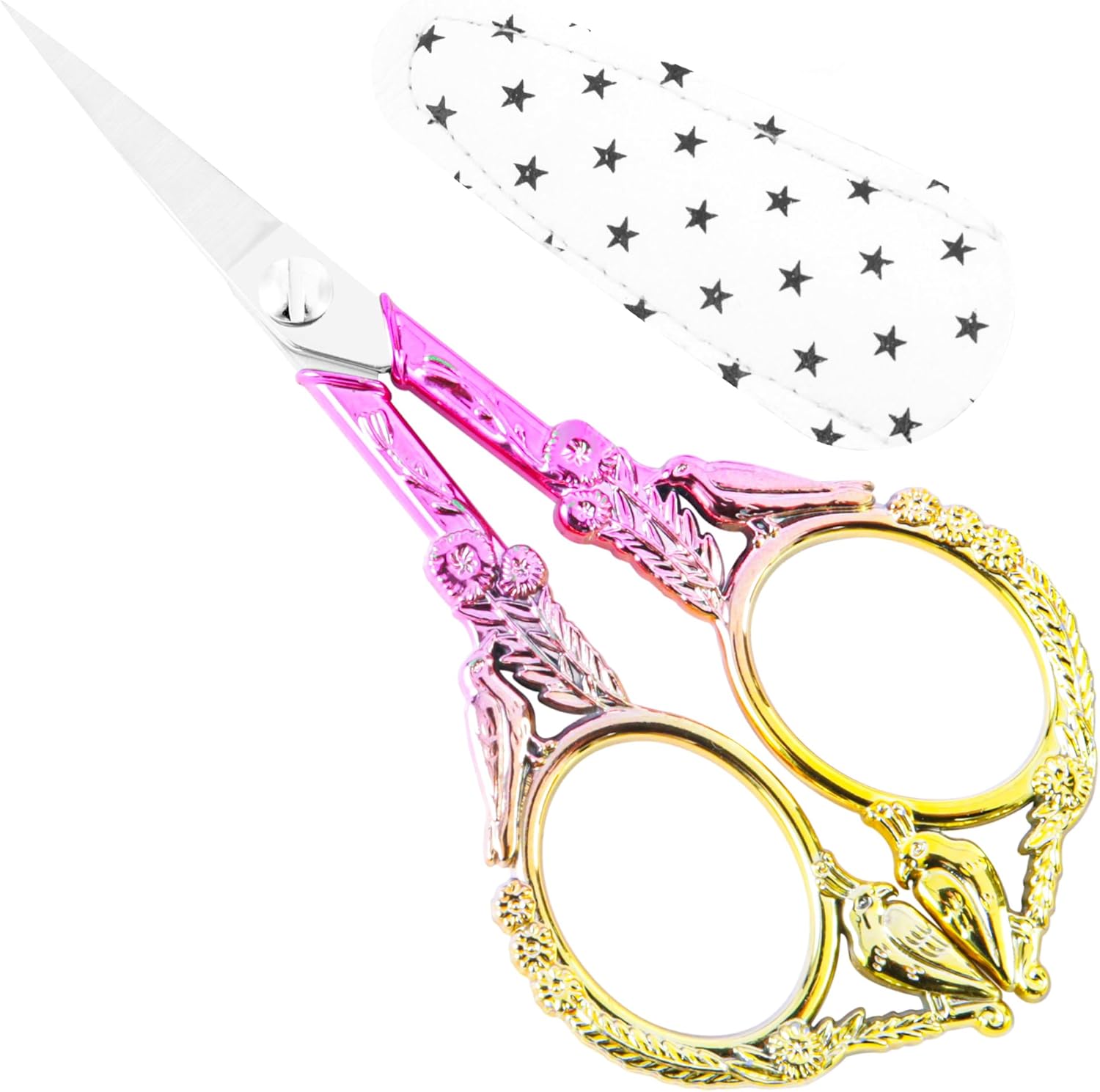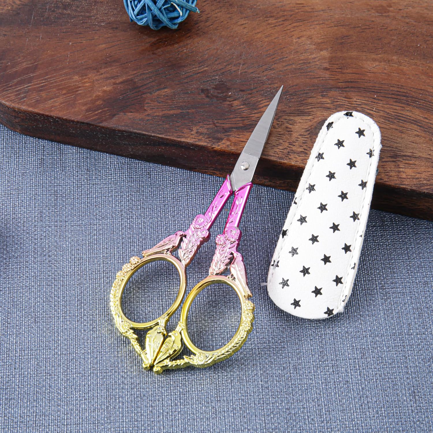 Small Embroidery Scissors with Cover -Cute and Comfortable Gradient handles with Sturdy and Sharp Tips for Precise Cutting, Perfect Size for Keeping in Your Sewing and Craft Supplies Kit