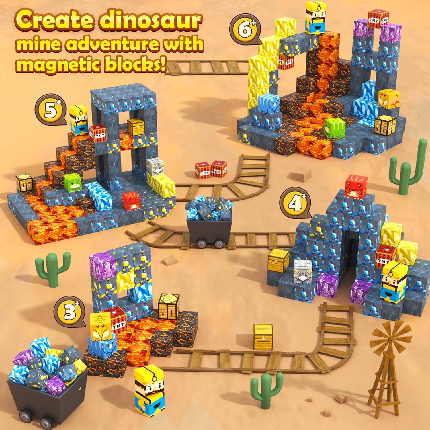 - 【PERFECT LEARNING TOYS GIFTS FOR KIDS】Give the gift of endless possibilities and knowledge exploration. Combines construction toys' educational value with dinosaurs excitement. Featuring fun mine magnetic building toys, keep kids entertained for hours. It's a great fidget kids toys for toddlers, preschoolers, teenagers, 3 4 5 6 7 8 years old boys and girls. Perfect educational gifts for birthdays, Christmas, Children's day, and school activities!