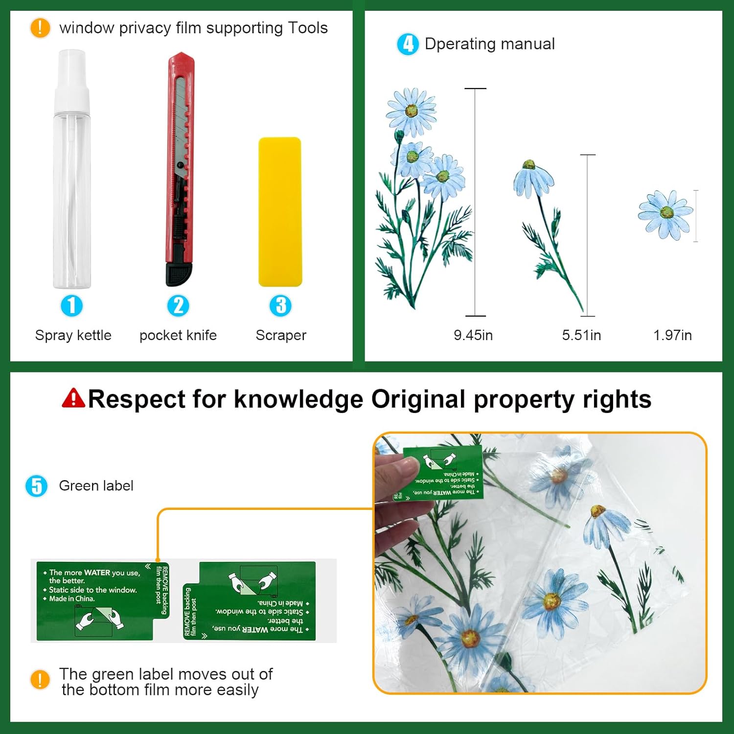 - DECORATIVE DESIGN: These window films feature a beautiful green leaf pattern that adds a natural freshness to any room and creates a rainbow visual effect when the sun shines.