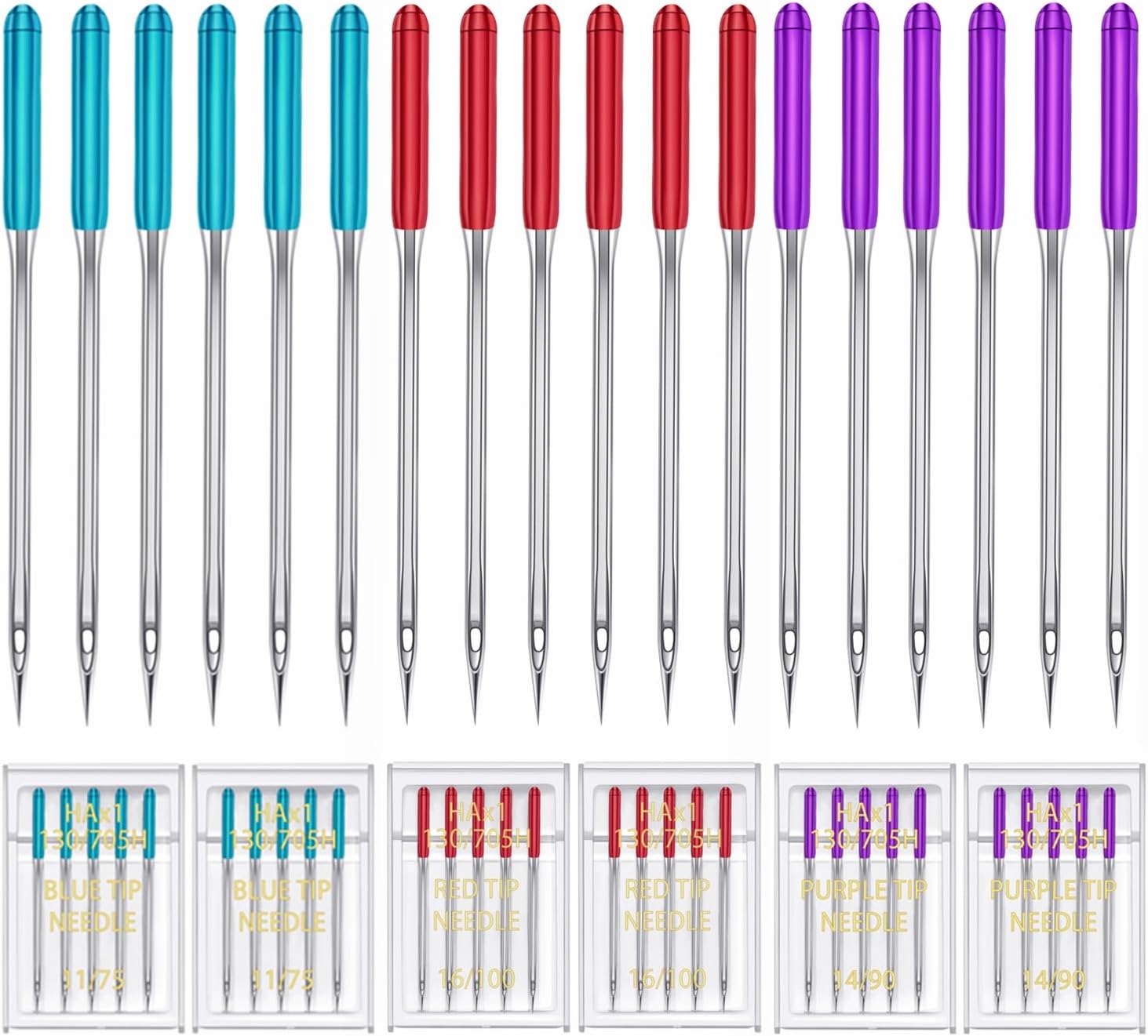 - HONEYSEW HAX1 130/705H 15x1 flat shank needles,universal regular point sewing machine needles.There are 6 sizes(65/9, 75/11, 90/14, 100/16, 110/18,120/20) can choose, each size has different colors for easily distinguishing, convenient to apply.