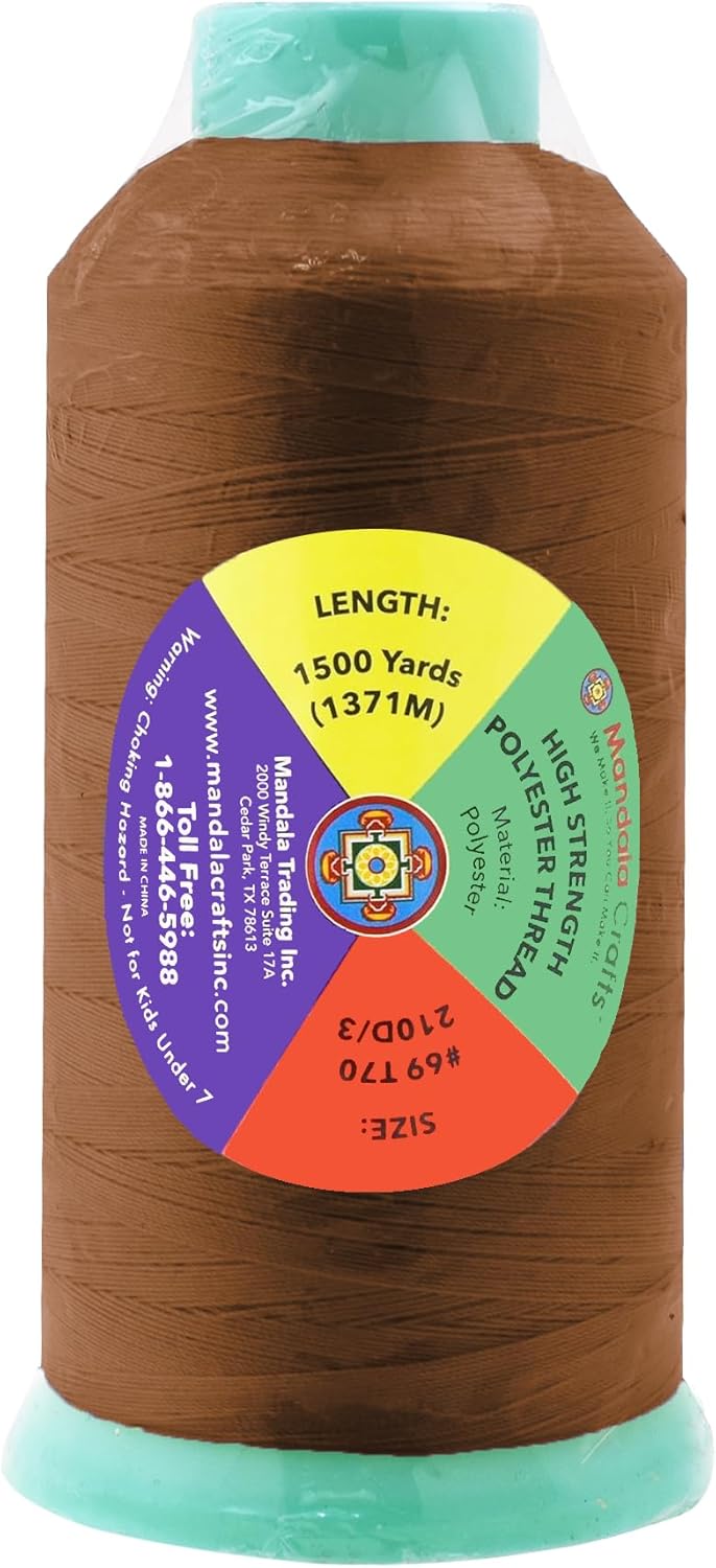Mandala Crafts Bourbon Brown Heavy Duty Thread - 1500 Yds Tex 70 Thread for Sewing Drapery Jeans Leather Hair Outdoor Marine Upholstery