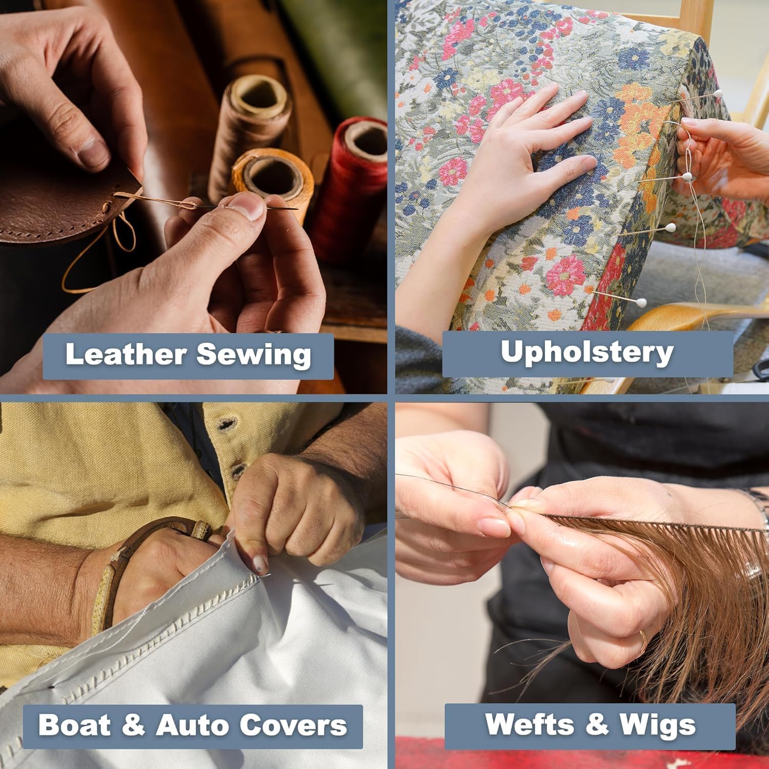 - Heavy Duty Sewing Threads: The heavy duty polyester thread has high heat & abrasion tolerance, and serves as great leather thread, outdoor thread, marine thread, weave thread, hair thread, carpet thread, canvas thread, & jeans thread.