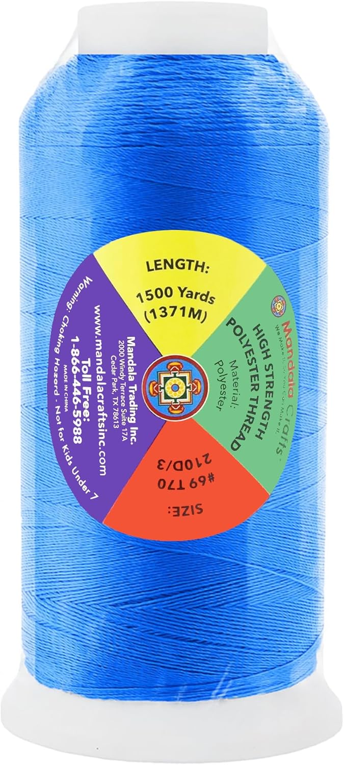 Mandala Crafts Sky Blue Heavy Duty Thread - 1500 Yds Tex 70 Thread for Sewing Drapery Jeans Leather Hair Outdoor Marine Upholstery
