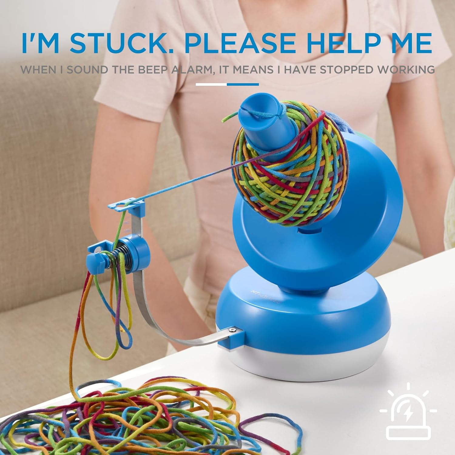 - Safety Design: Even when winding yarn, you can do other things, such as crocheting, with peace of mind without constantly watching it work. Once the yarn gets tangled or stuck, it will automatically stop and remind you with an alarm. This function design protects the motor for longer service life. Absolutely a must-have tool for any crafter who uses yarn