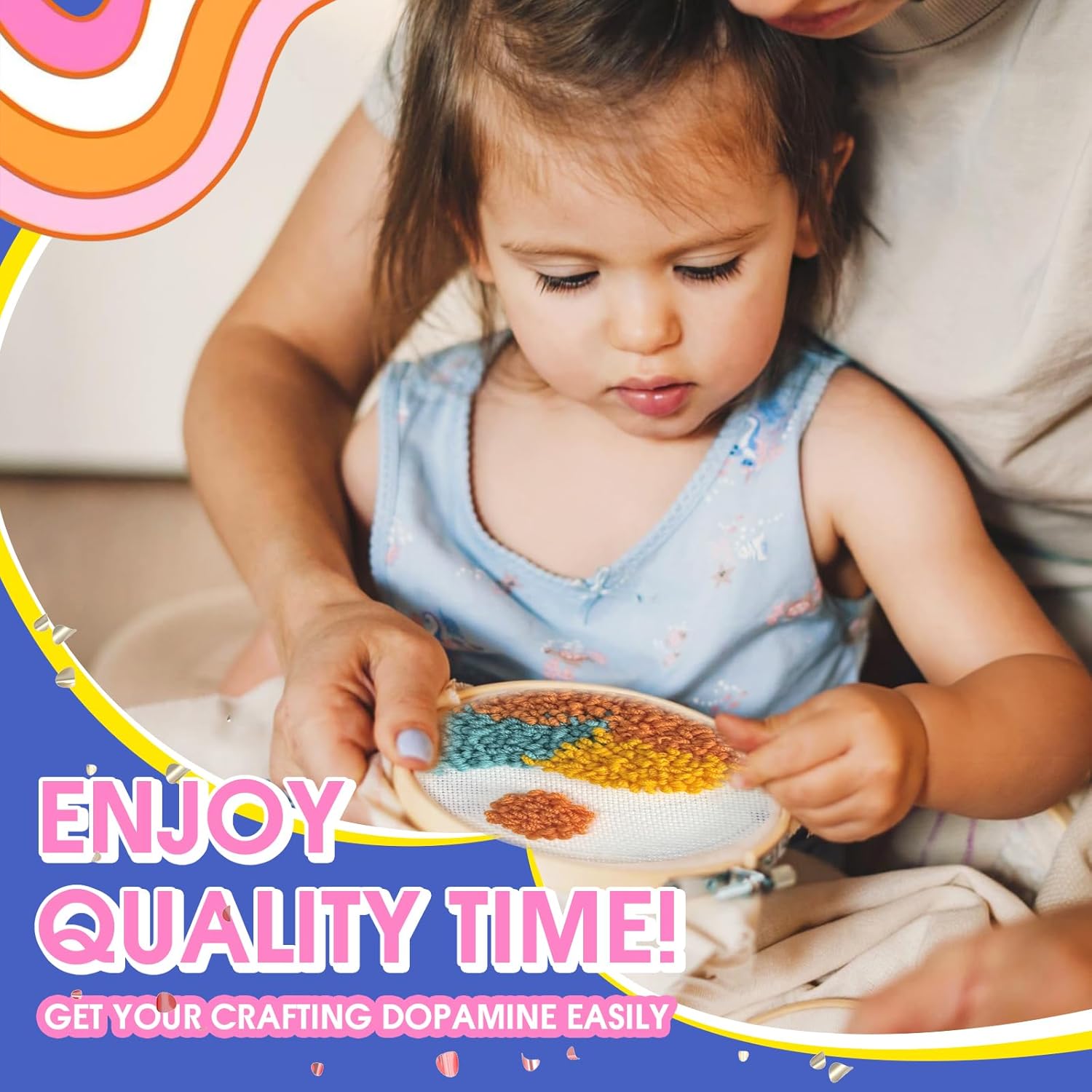 - Enjoy Quality Crafting Time: This kit offers hours of creative fun, bringing a burst of joy with each completed piece. Itβs an ideal activity to enjoy with children, making for memorable parent-child bonding time. Punch needle crafting sparks their imagination and helps develop fine motor skills, hand-eye coordination, and concentration. Itβs a hands-on project that encourages patience and perseverance through each step of the weaving process