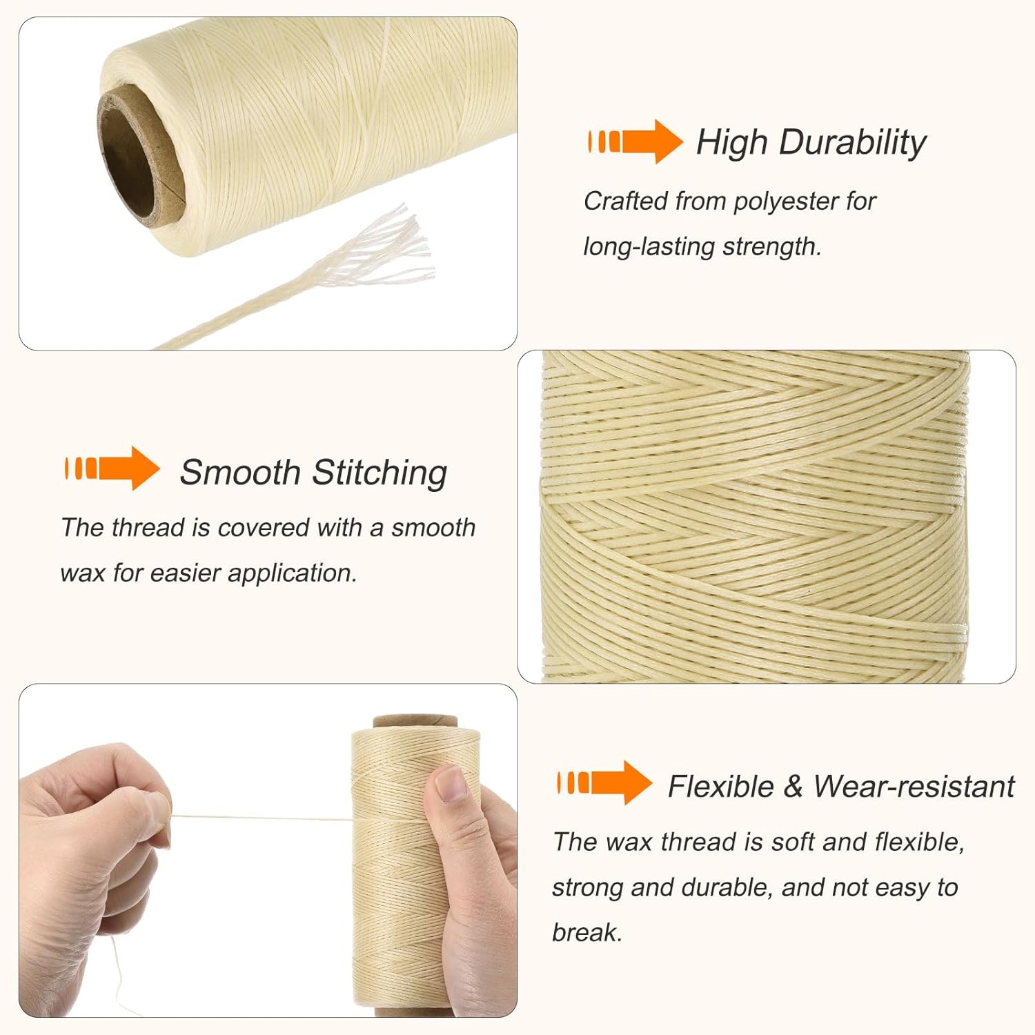 MECCANIXITY Waxed Thread,284 Yard 0.8mm 150D Flat Wax Thread Polyester Waxed String for Leather Sewing Hand Weaving Book Binding Home Decoration,Beige