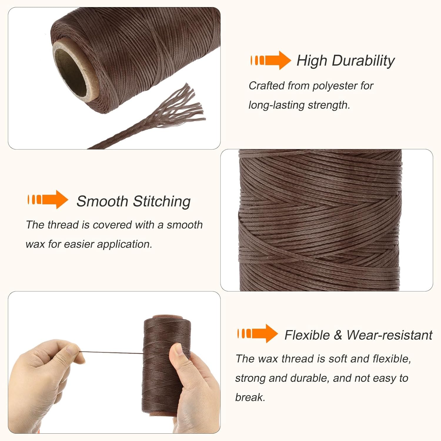 - 210D flat waxed thread is made of multiple polyester threads braided and covered with wax, which is tough and durable, not easy to break, and has high tensile strength; The waxed cord is soft and not easy to deform. The perforated sewing is smooth and flexible. It can withstand high temperatures and is easy to seal, cut, knot, and sew; it can be used for most leather DIY projects; Rich in colors, made of braided polyester, the thread is lightly waxed and coated, waterproof and non-fad