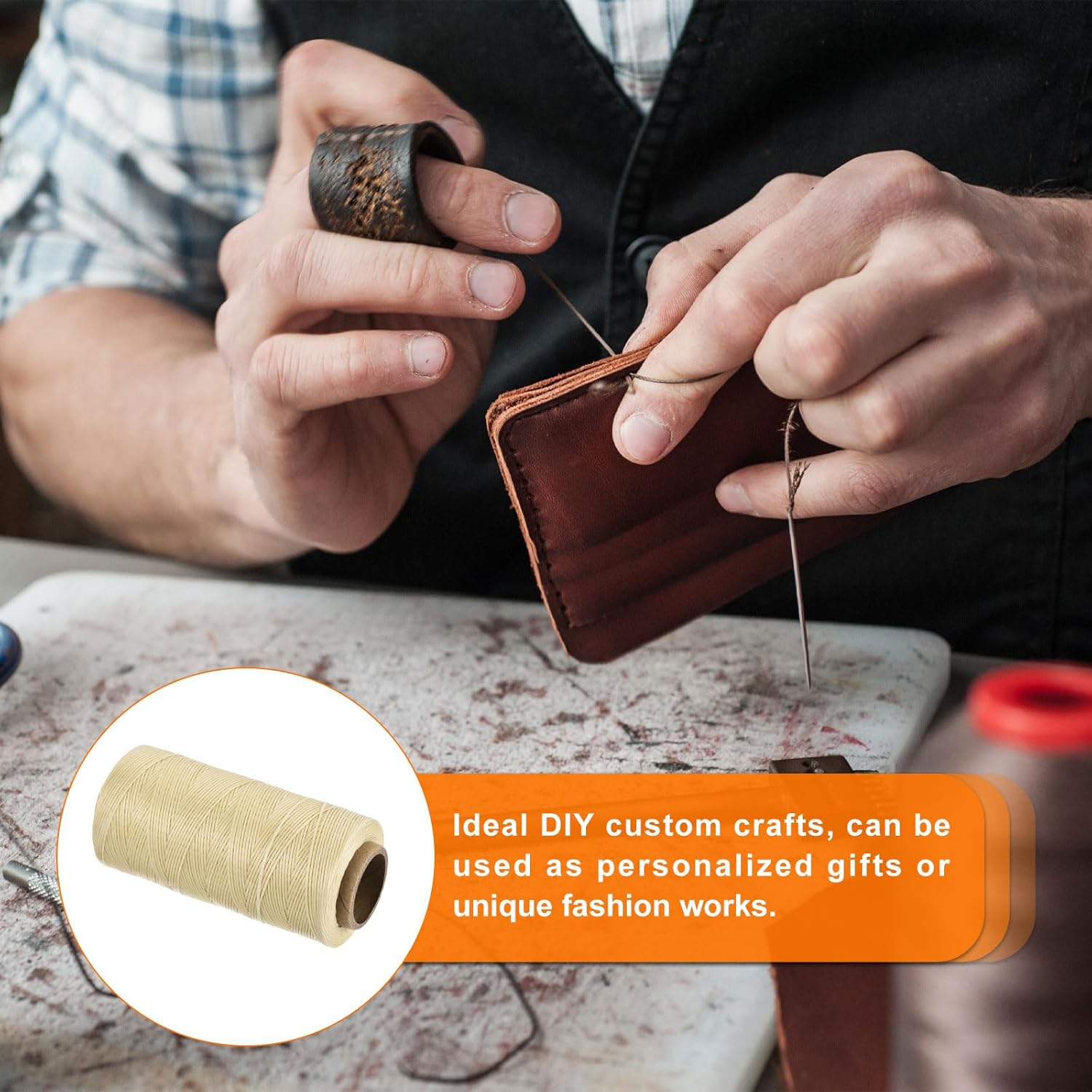 MECCANIXITY Waxed Thread,197 Yard 1mm 210D Flat Wax Thread Polyester Waxed String for Leather Sewing Hand Weaving Book Binding Home Decoration,Beige