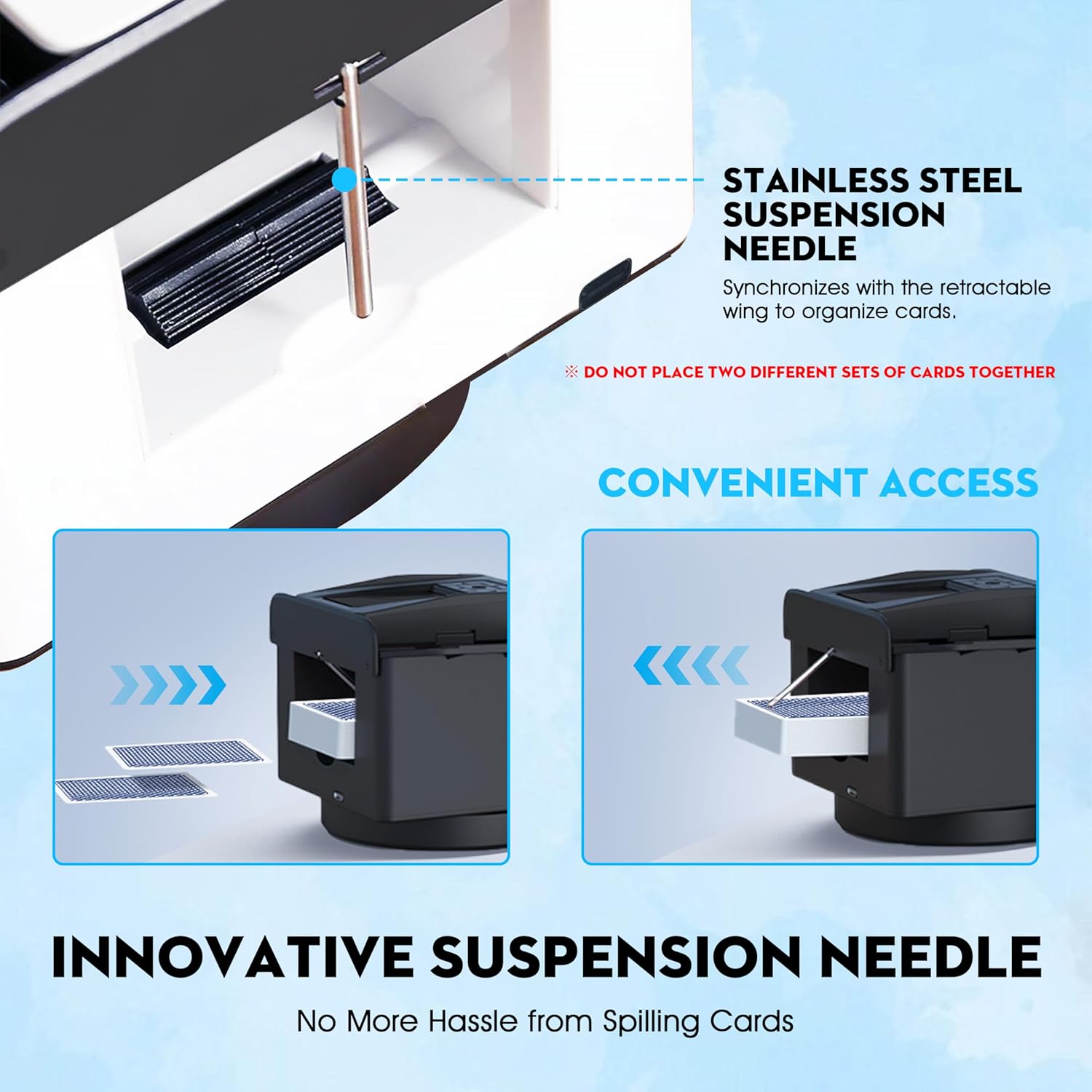 - 【Effortless Shuffling & Dealing】 Imagine this: It’s game night, and everyone’s ready for a thrilling round of Poker or UNO. You press a button on our automatic card shuffler, and within seconds, perfectly shuffled cards are dealt to each player with precision. No more time wasted on manual shuffling or disputes over unfair deals—just smooth, seamless fun for up to 12 players.