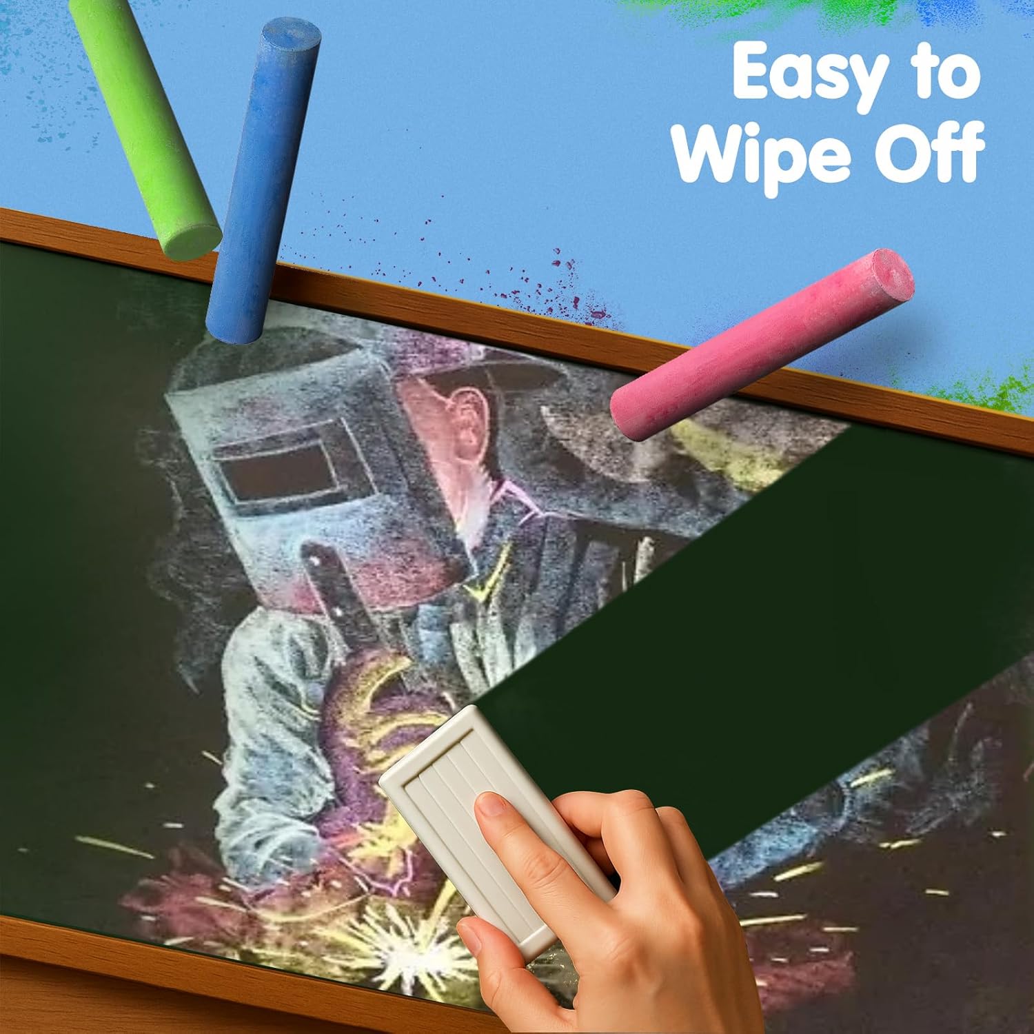 - Smooth Writing & Easy Erasing: Medium-firm texture with optimized smoothness for skip-free, fluid strokes on blackboards. High color vibrancy and moderate adhesion ensure vivid marks that erase cleanly without residue.