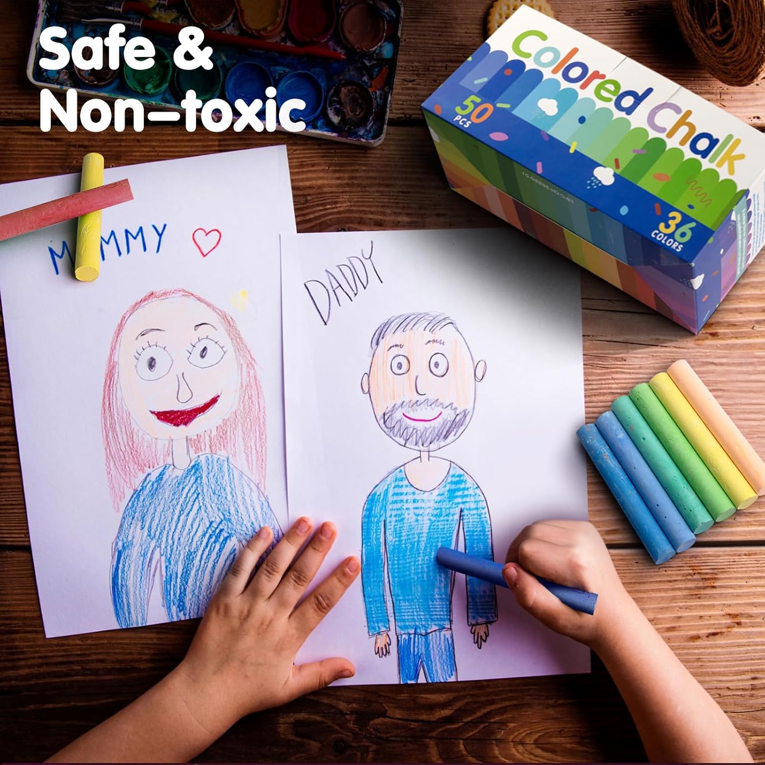 Colored Chalk 36 Colors 50 PCS | Non-Toxic Toddler Chalkboard Chalk for Teachers and Kids | Sponge-Wrapped Creative Drawing & Writing Art Tool