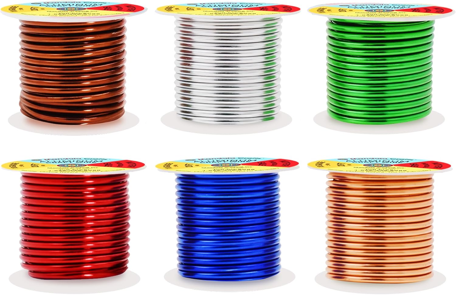 - 6 Bulk 10 Gauge Aluminum Wire Rolls for Crafts: Each 20 feet long, round 2.58mm wire or 10-gauge crafting wire is continuous. The silver, copper, true blue, brown, red, and Kelly green thick wire with 10g wire gauge fits for indoor & outdoor use.
