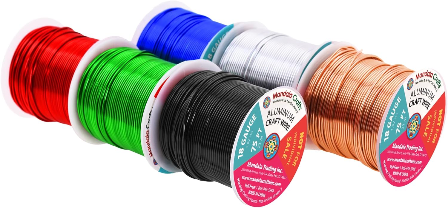 - 6 Bulk 18 Gauge Aluminum Wire Rolls for Crafts: Each 75 feet long, 1.024mm wire or 18-gauge crafting wire is continuous. The silver, copper, true blue, black, red, and Kelly green thin aluminum wire with 18g wire gauge fits for indoor &outdoor use.