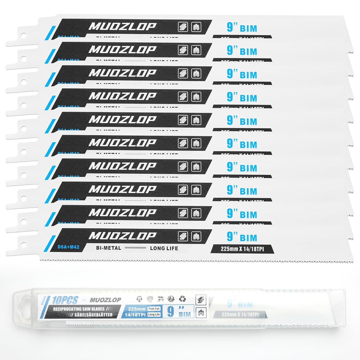 10 Pack 9 inch Reciprocating Saw Blades Set,14/18TPI High Carbon Saw Blades, Metal Saw Blades with Organizer Case (10, 14/18TPI/225mm)
