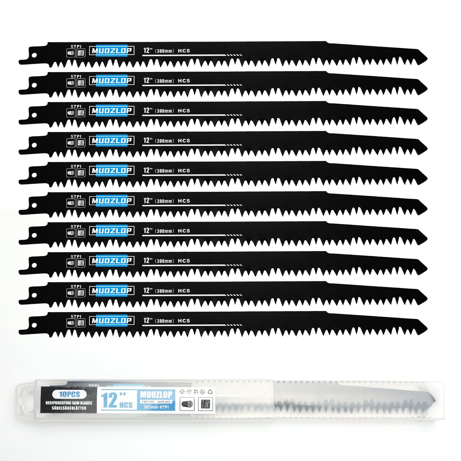 10 Pack 12 inch Reciprocating Saw Blades Set,5 TPI High Carbon Saw Blades,Woodcutting Saw Blades with Organizer Case (10, 5TPI/300mm)