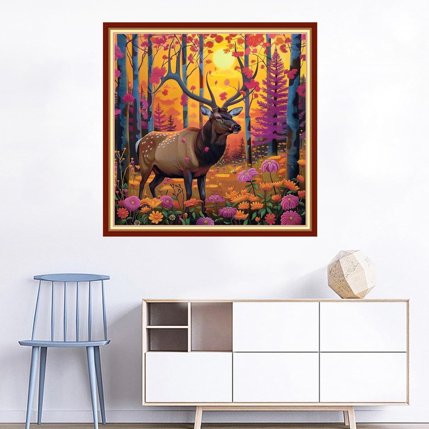 Joyhoor Cross Stitch Kits for Beginners Stamped Cross-Stitch Supplies Needlework preprint Embroidery Kits for Adults DIY Needlepoint Kits Embroidery Patterns 11CT-Deer Landscape 18x18 inchs