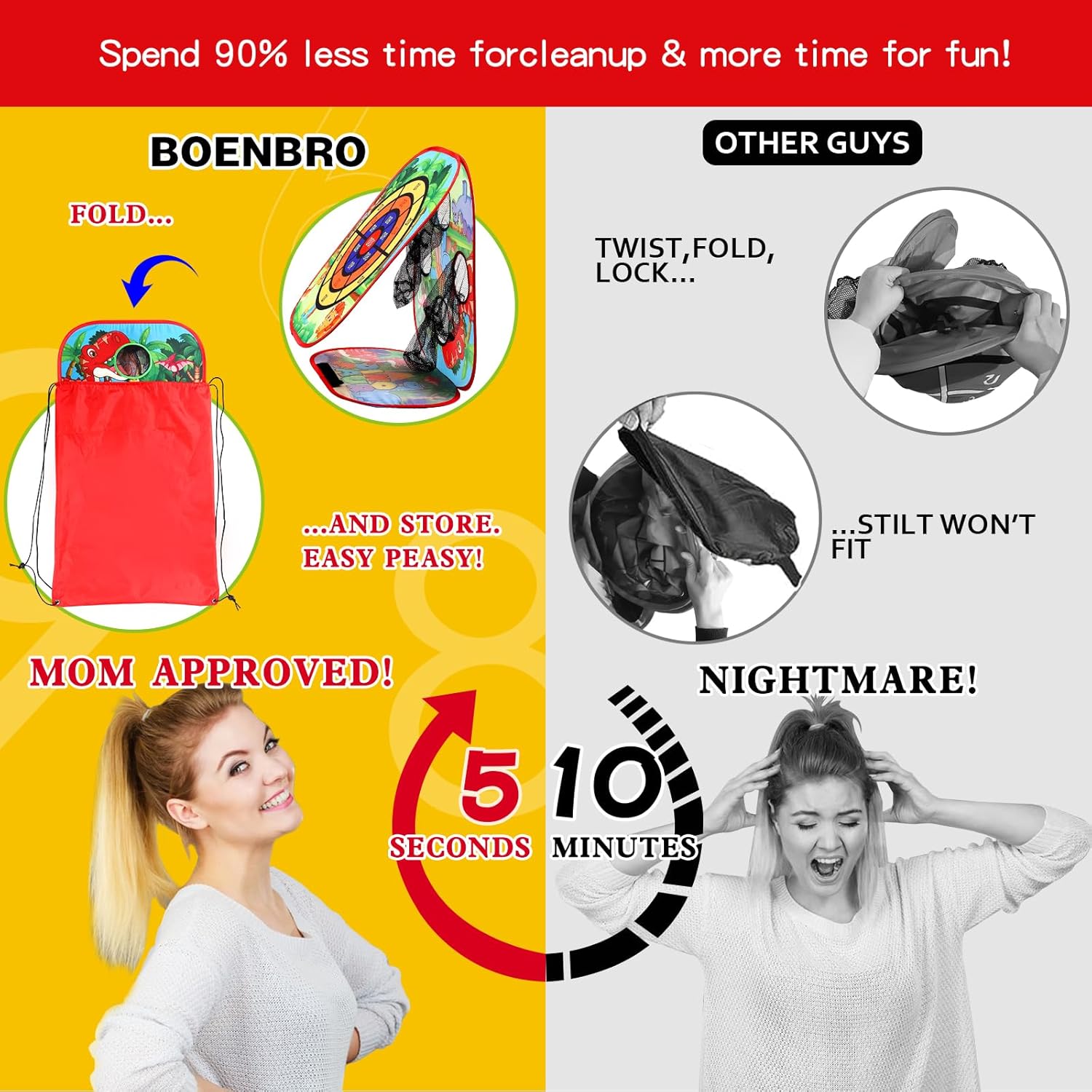 - Durable Sports and Exercise Toy: Crafted from thick, durable fabric with no sharp edges, this game is built to last. Its lightweight, folding frame makes it easy to set up, store, and carry, whether at home or on the go. You can even place it directly into the convenient drawstring pouch and carry it on your back for easy travel. The bean bag toss game is a great way to keep kids away from screens, offering fun and active play anytime, anywhere.