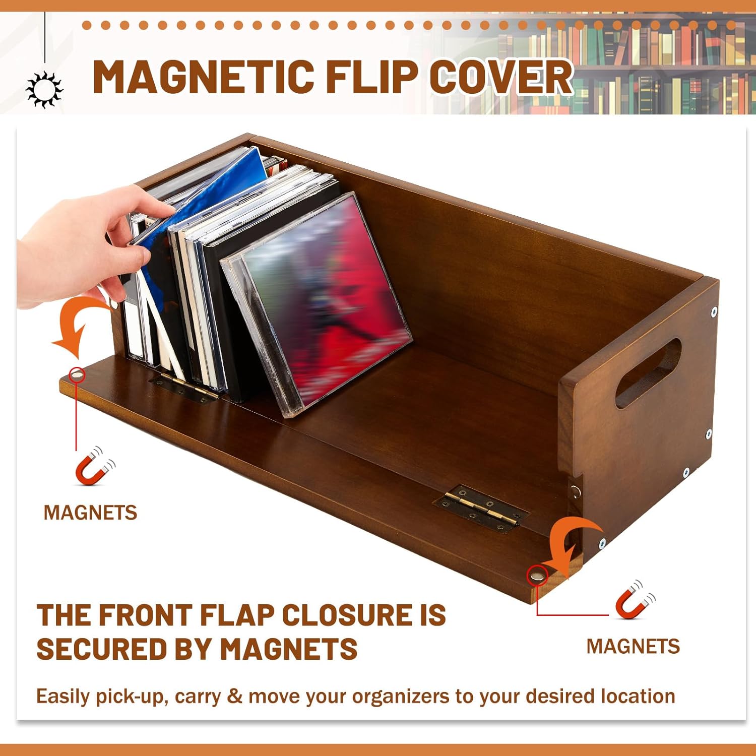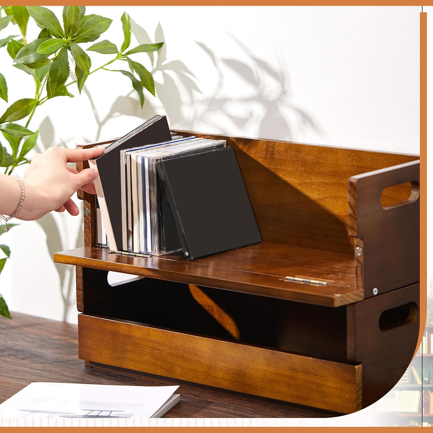 - Robust and Handy: the CD cd display case comes with a reinforced handle, making it convenient to move around; Easily pick up, carry, and rearrange the CD organizers to your desired position, thanks to the robust handle; Now, enjoy your music where you want, when you want
