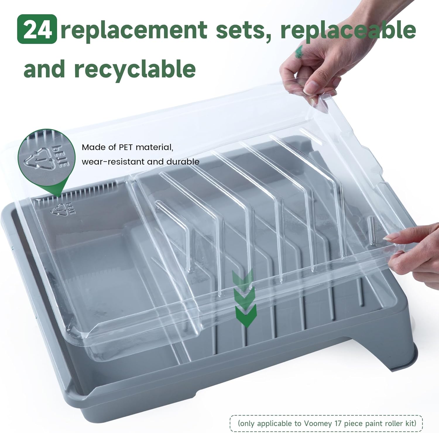 Voomey Paint Tray Liner Disposable,Paint Pan Liners,24 Pcs Heavy-Duty Plastic Paint Tray Liners for House Painting, Leak-Proof & Easy Cleanup (Only Compatible with Voomey 17pcs Paint Roller Kit)