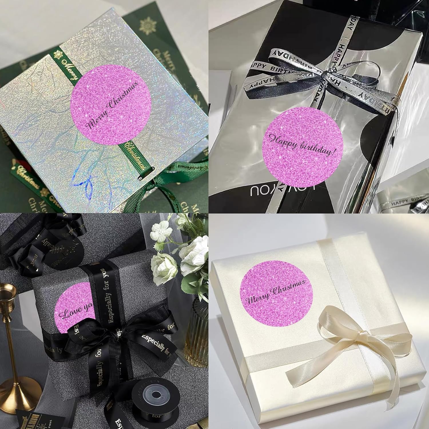 3" Holographic Thermal Label Stickers, Round Direct Thermal Label Stickers, Glitter Thermal Printer Sticker Labels for Gift Wrapping, Self-Adhesive Custom Logo Design- Glitter Pink