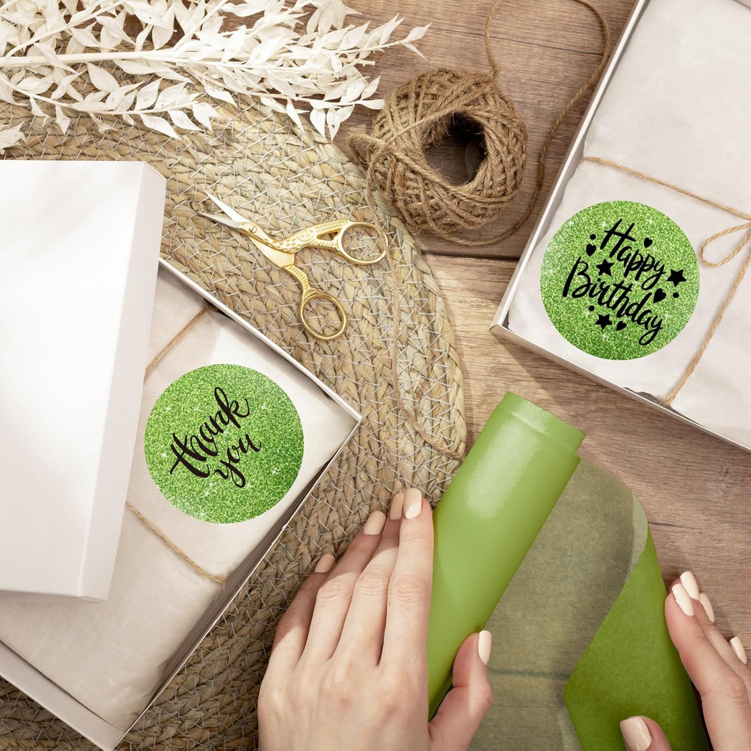 2" Holographic Thermal Label Stickers, Round Direct Thermal Label Stickers, Glitter Thermal Printer Sticker Labels for Gift Wrapping, Self-Adhesive Custom Logo Design-Glitter Green