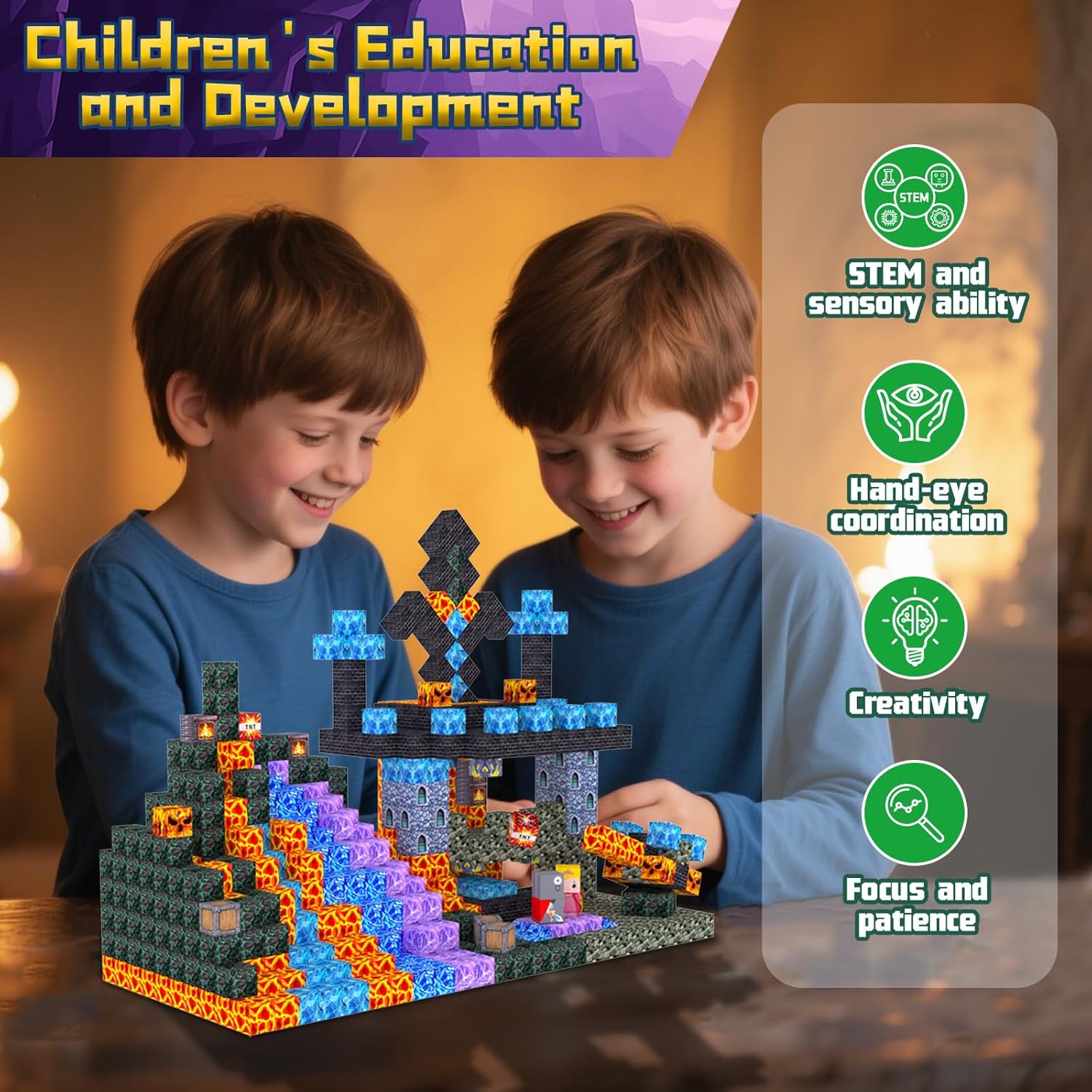 - 【Great Gift】Magnetic building block toys are ideal Montessori toys for children, especially for young gamers who love to explore and build in a virtual world, ideal gifts for boys and girls aged 3 4 5 6 7 8 9 10 and up. Suitable for group activities and classroom use, including preschool and kindergarten.