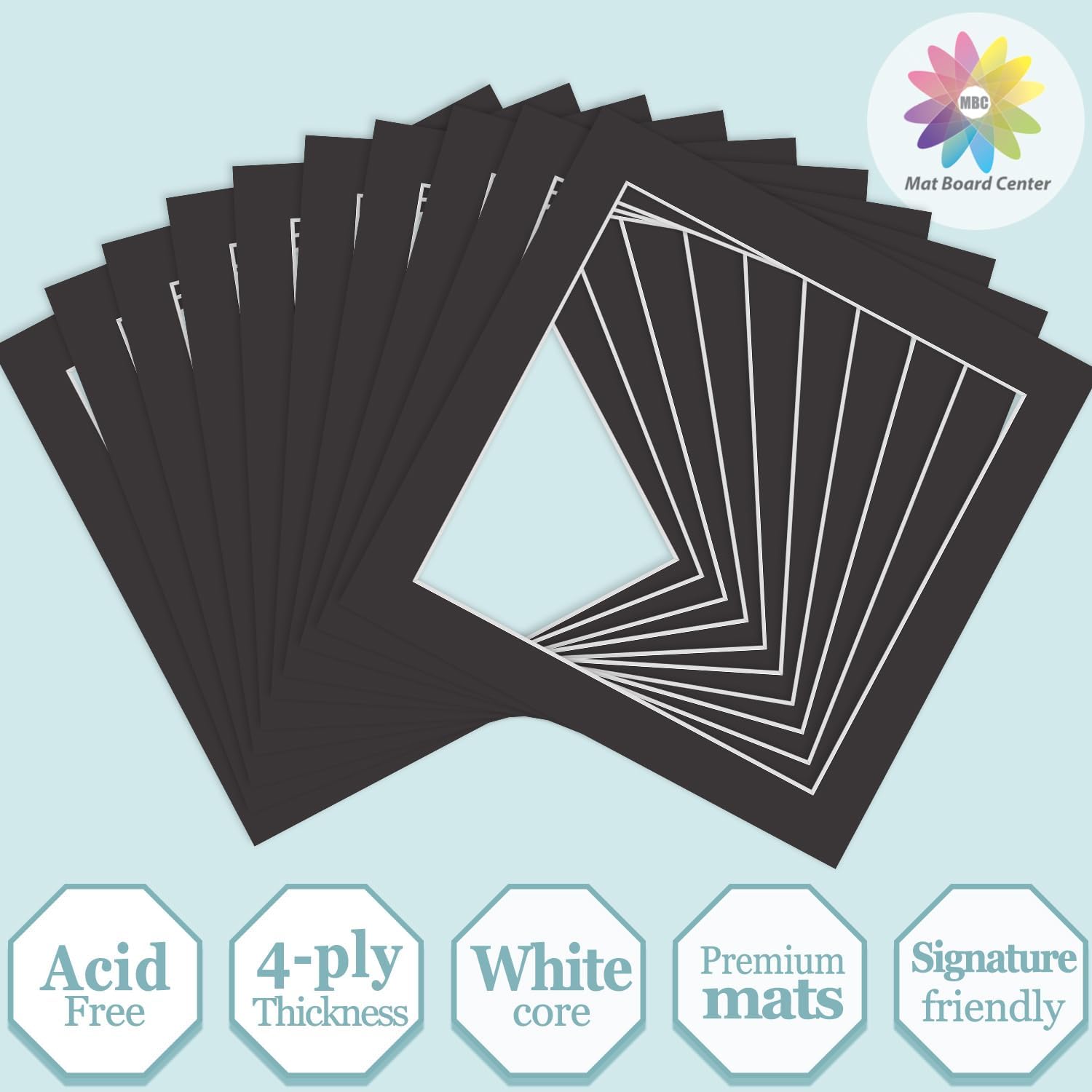 MBC Mat Board Center, 10 Pack 12x12 for 10x10 Black Picture Mats Frame Mattes, Bevel Cut, Acid Free, 4-ply Thickness