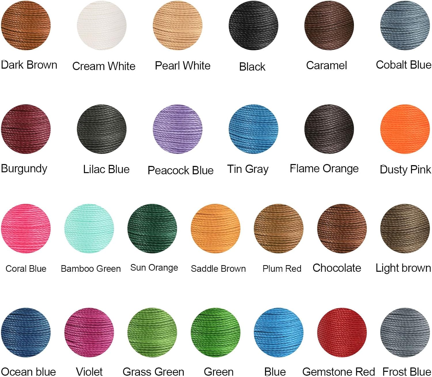 - [ Ultra-Durable and Vibrant Color ] - Experience great strength, durability, and versatility with our three-ply waxed polyester thread. Designed to withstand high temperatures and resist fading, this tightly woven thread offers a smooth, even wax finish that doesnβt flake or stick to your hands. Its robust construction ensures it can handle rigorous use and frequent washing without losing its vibrant color.