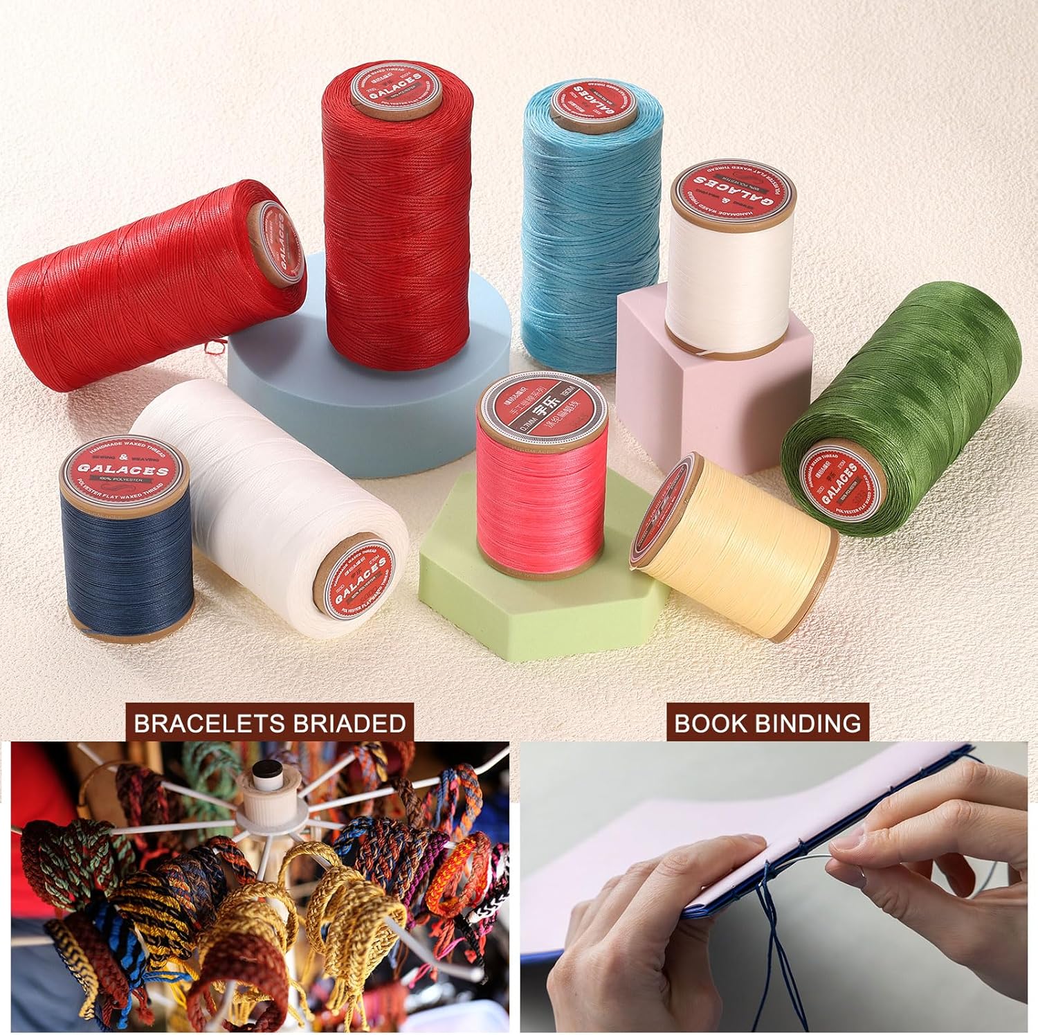 - [ Ultra-Durable and Vibrant Color ] - Experience great strength, durability, and versatility with our 100D waxed polyester thread. Designed to withstand high temperatures and resist fading, this tightly woven thread offers a smooth, even wax finish that doesnβt flake or stick to your hands. Its robust construction ensures it can handle rigorous use and frequent washing without losing its vibrant color.