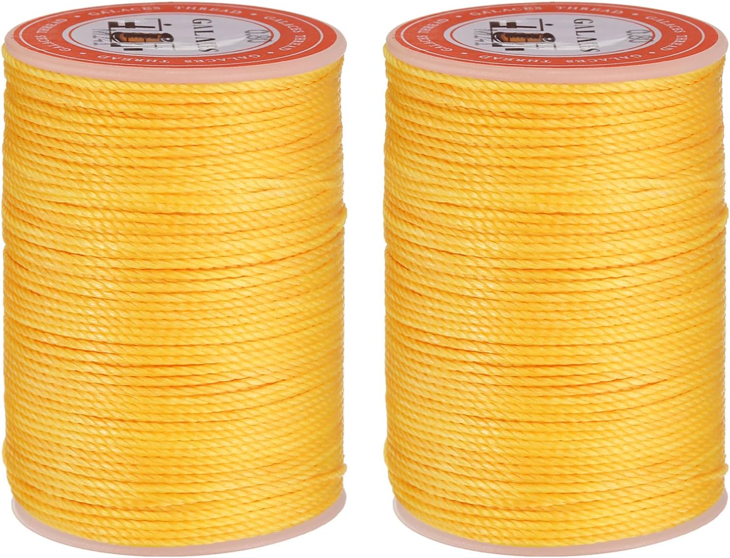 uxcell Round Leather Sewing Waxed Thread, 55m / 60 Yards Polyester Wax String, 0.80mm Wax Stitching Cord for Leather Crafts, Bookbinding, Bracelets Braided, Yellow, 2pcs