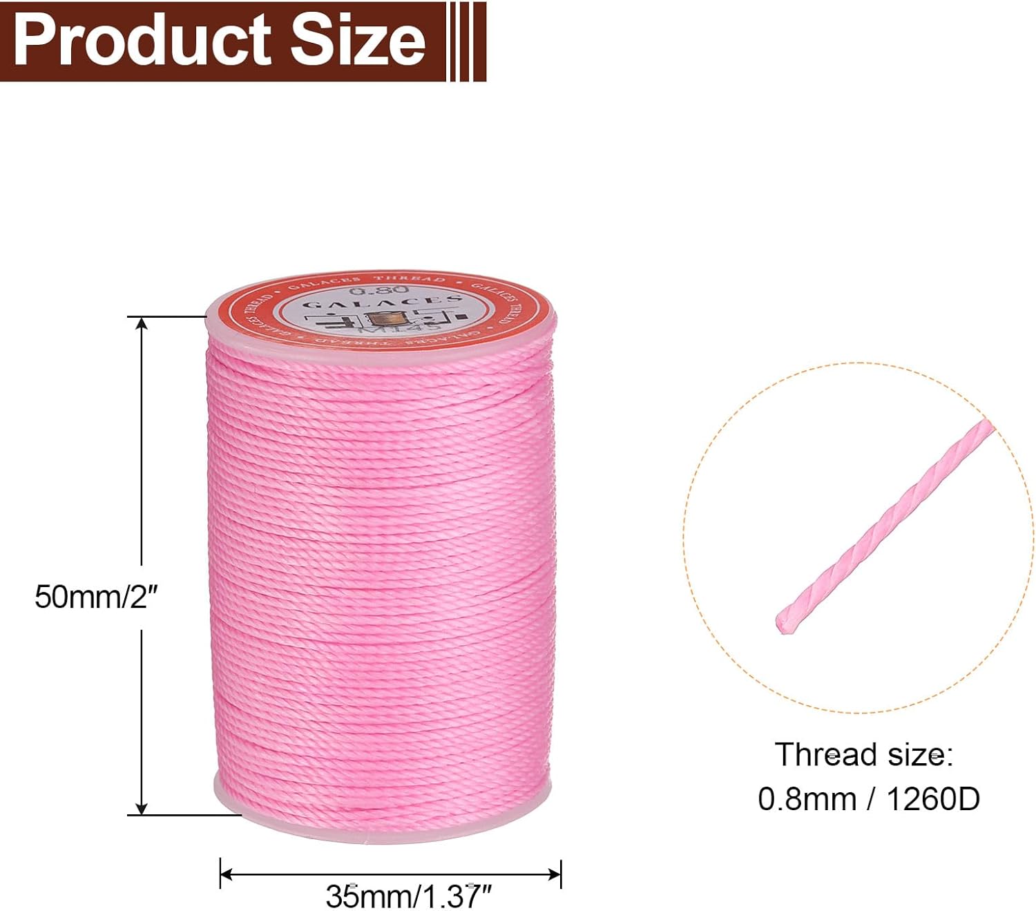 uxcell Round Leather Sewing Waxed Thread, 55m / 60 Yards Polyester Wax String, 0.80mm Wax Stitching Cord for Leather Crafts, Bookbinding, Bracelets Braided, Pink, 2pcs