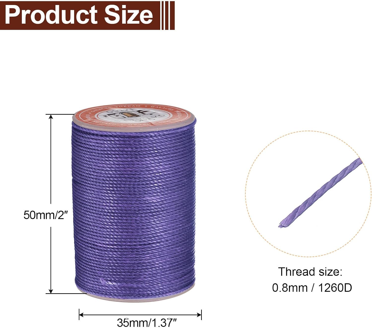 - [ Generous Length ] -With 55m (approx. 60 Yards) per spool and a 0.8mm diameter, this Round 1260D waxed polyester leather thread provides exceptional value. Its generous length reduces the need for frequent spool changes, allowing you to seamlessly complete multiple projects.