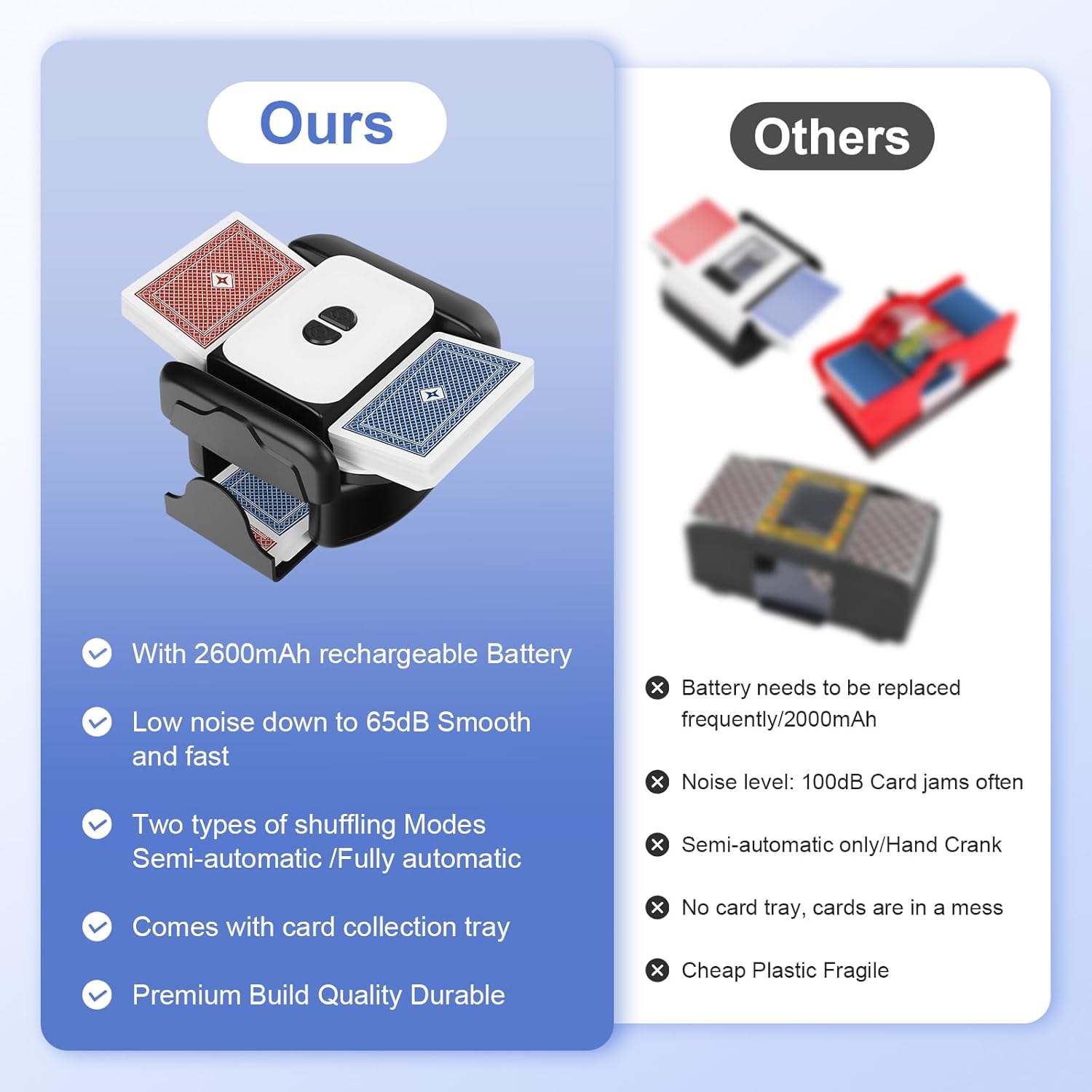 - ♠️Auto-Stop Shuffling for Smarter Play♠️No more over-shuffling or timing guesswork—our upgraded card shuffler automatically stops when your cards are fully mixed. Hands-free and hassle-free every time.