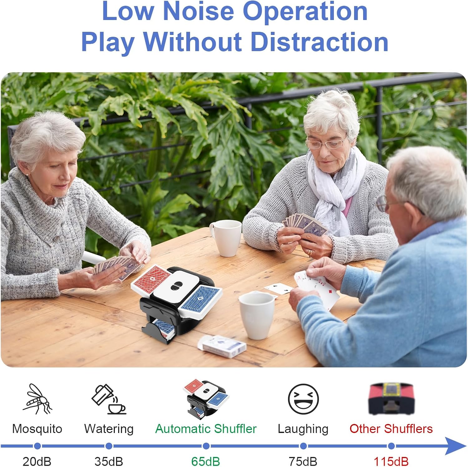 - ♠️Senior-Friendly, Easy to Operate♠️One-button operation with auto-stop makes it easier for seniors or players with limited dexterity to shuffle cards independently—no holding buttons or struggling with uneven decks.