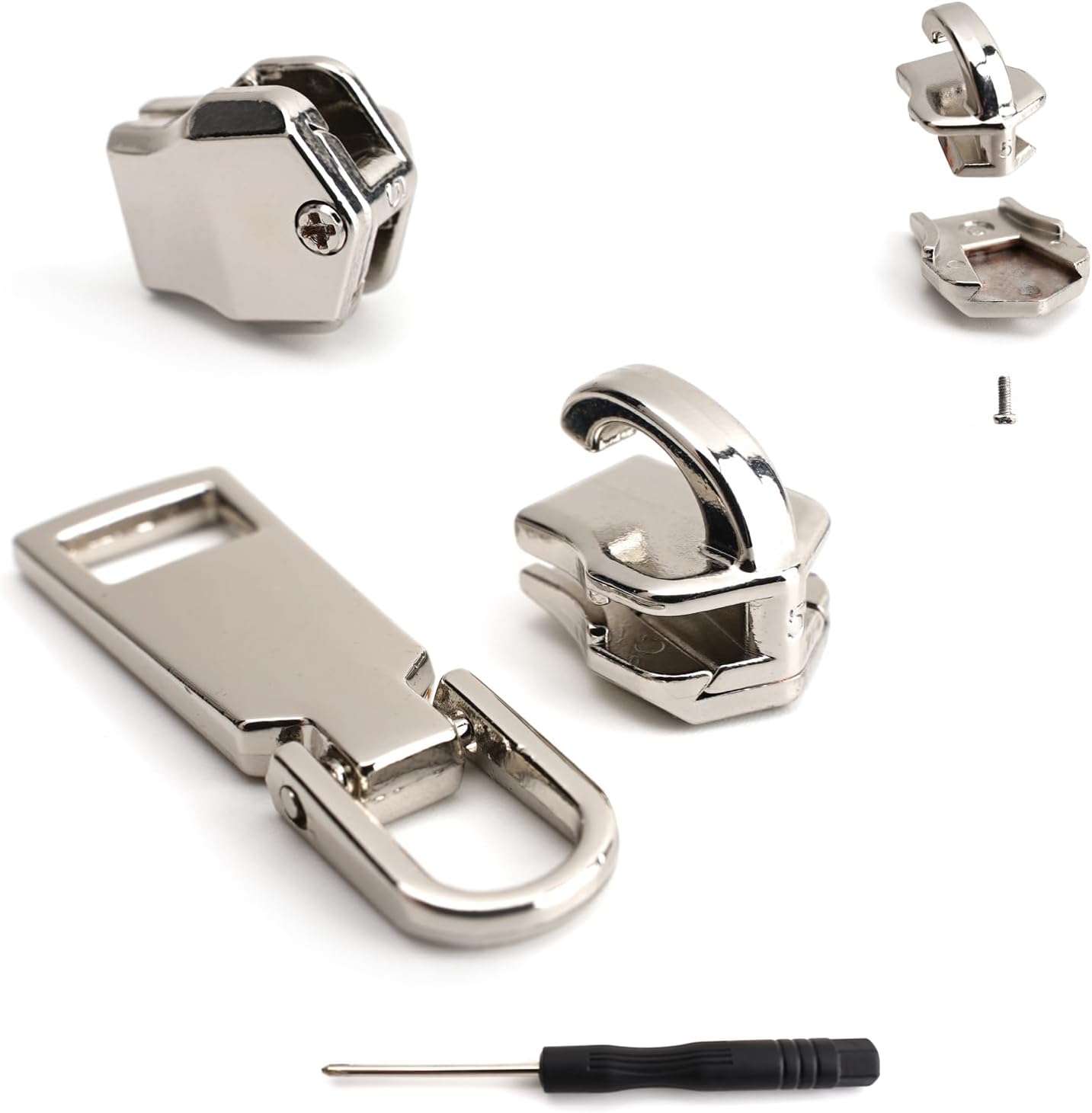 AKTIOIN Metal Zipper Repair Kit for Jackets, Luggage, Bags, Backpack, No Sewing Required Detachable Zip Heads Zipper Pull Replacement (Silver, #5)