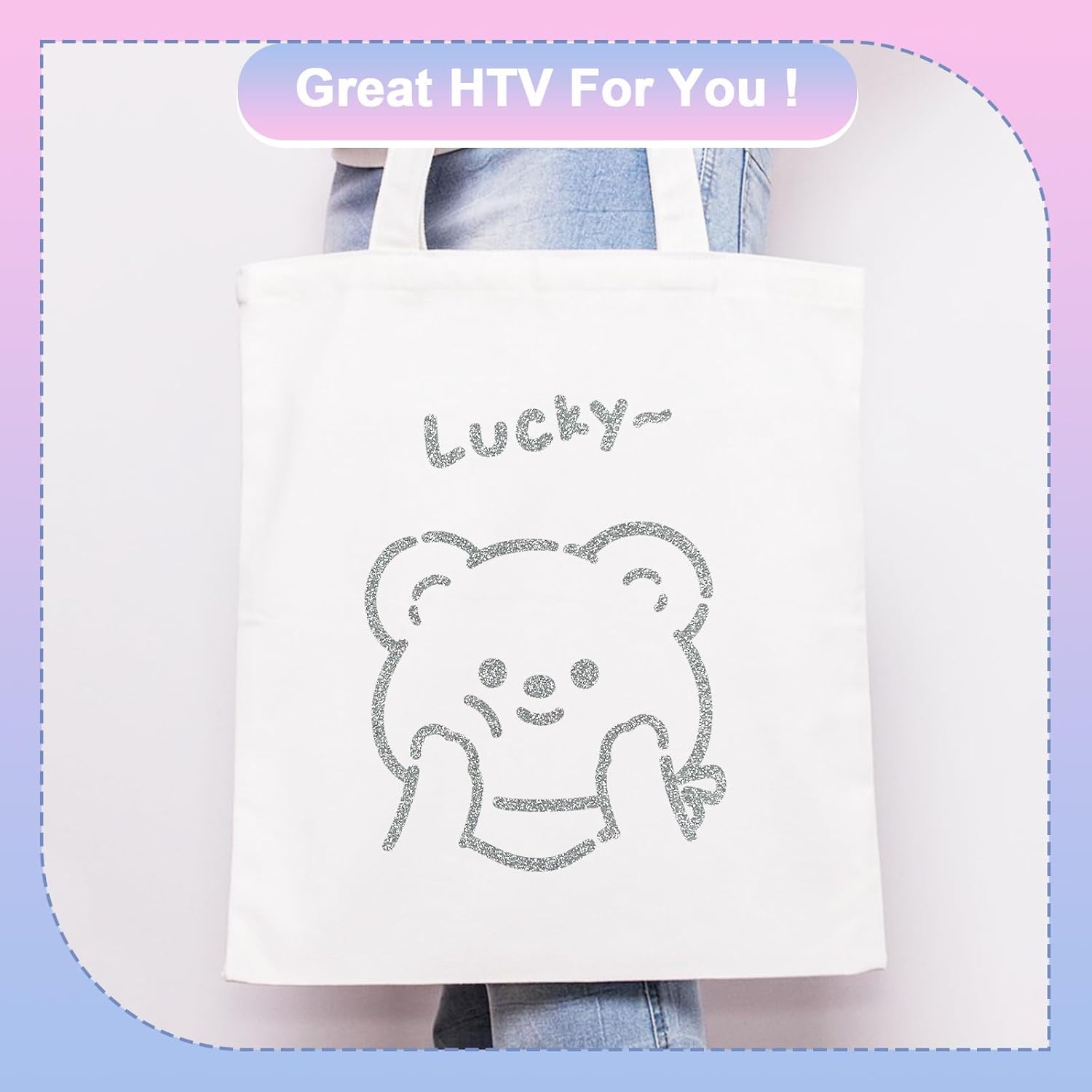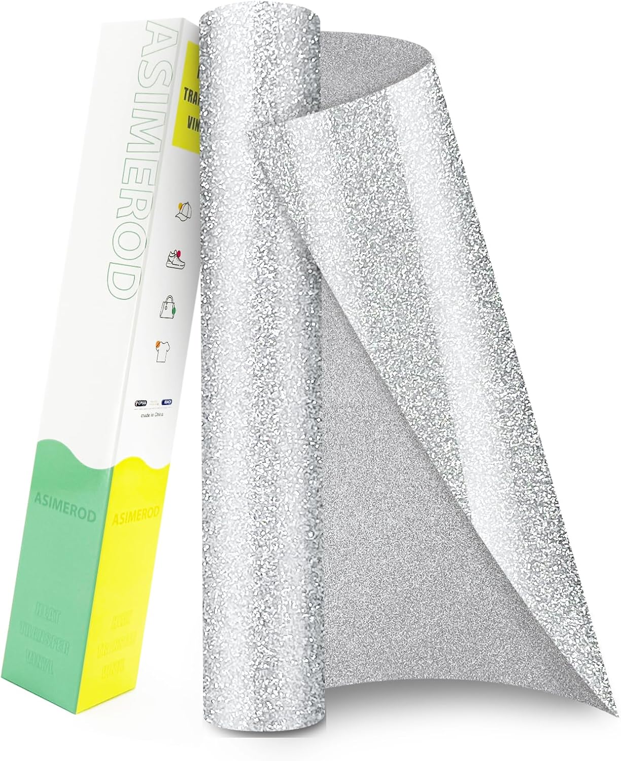 ASIMEROD Silver Glitter Heat Transfer Vinyl Rolls- 12" x 10ft. Silver Glitter Iron on Vinyl for DIY T-Shirts, Glitter for All Cutters, Heat Transfer Vinyl