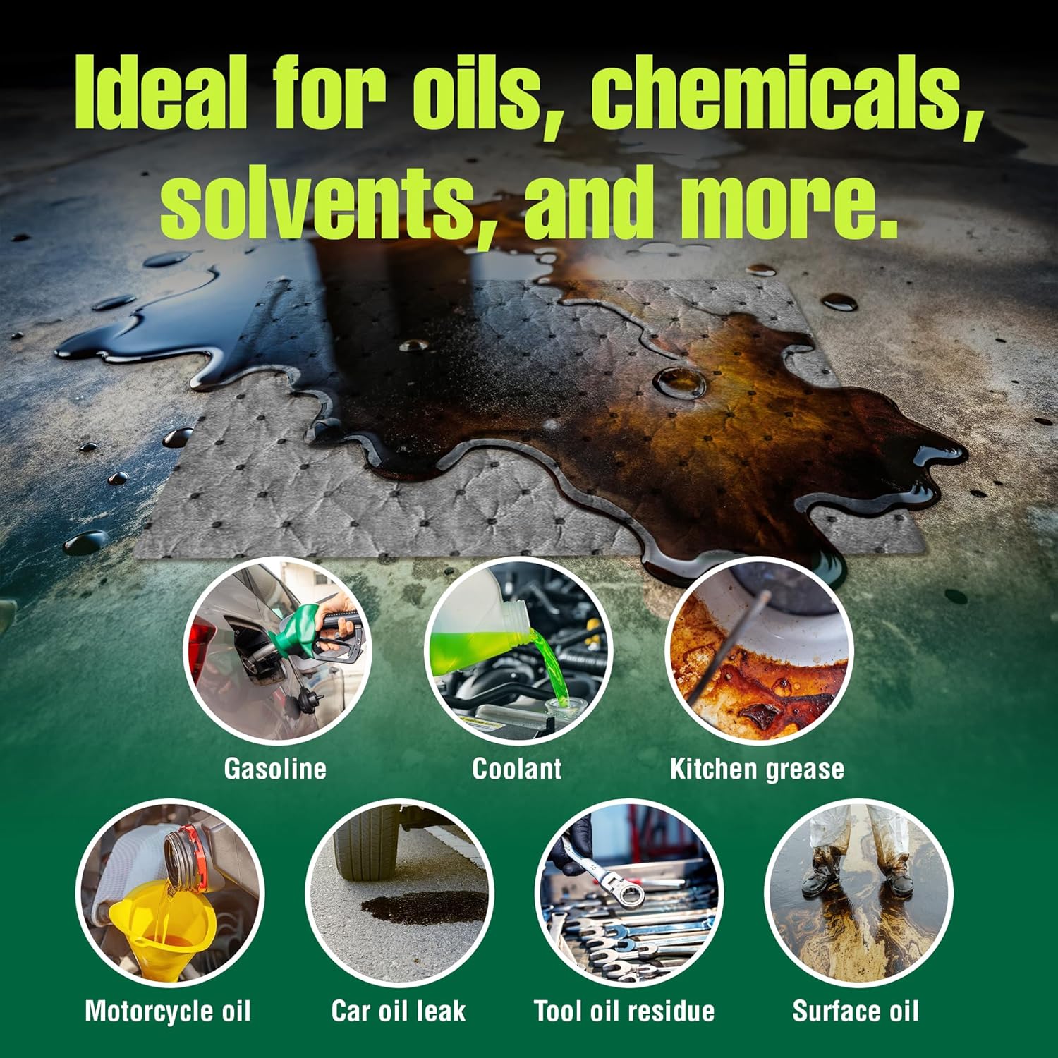 - CONQUER ANY SPILL: Flashdry Universal Spill Absorbent Pads are versatile, dimpled and designed to tackle a wide range of industrial spills, leaks, and drips. With their exceptional absorbency, these pads effectively soak up common liquids such as oils, solvents, grease, paints, coolants, and chemicals making spills a thing of the past. Experience the convenience of quick and easy cleanups with Flashdry Universal Spill Absorbent Pads