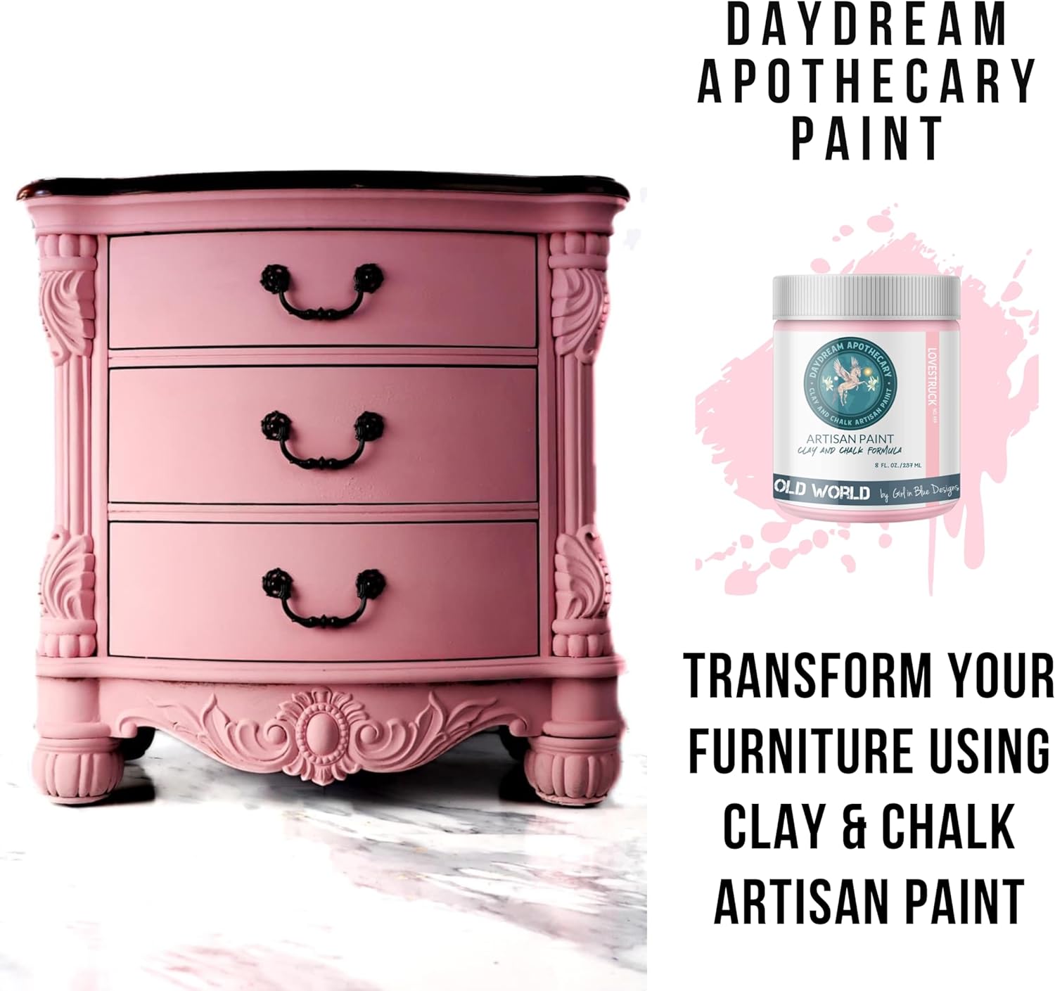 - Unmatched Versatility: Our Premium Chalk Paint for Furniture stands out as the ultimate choice when looking for paint for dressers, paint for tables, paint for desks or paint for crafts and home decor. Our water-based formula has unlimited possibilities and adheres to most surfaces. The consistency and texture give your project a vintage or country chic painted look. Our chalk paint formula is ultra-low VOC, Reconstitutes with water, and blends beautifully and has very little odor.