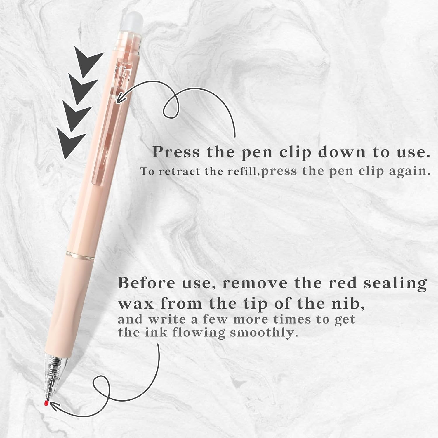 - Retractable & Portable: This retractable and erasable unisex ink pen retracts its nib at the touch of a button. The pen clip fits in your pocket or book