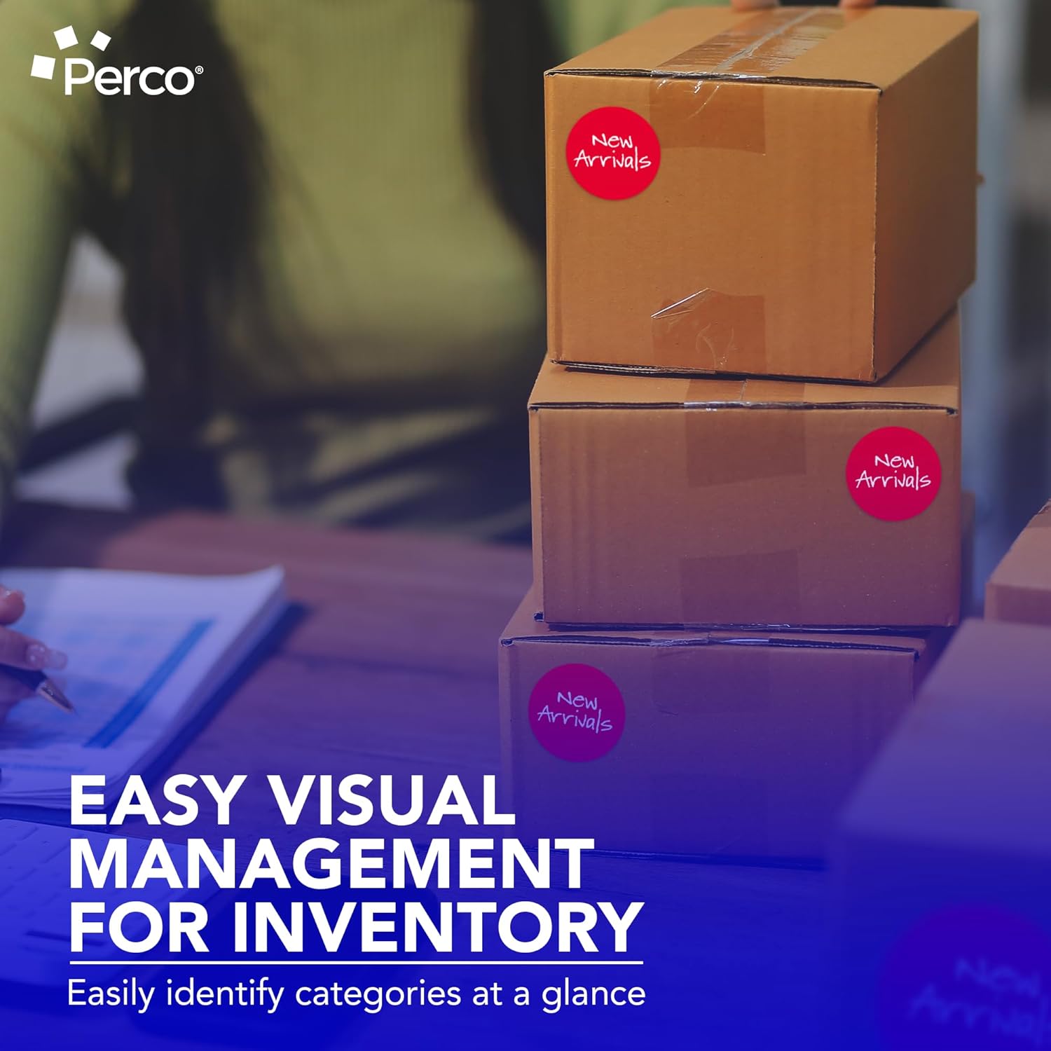 Perco Red 3-Inch Round Circle Dot Sticker Labels - Multi-Roll Pack (3 Rolls, 500 Labels Each) - Permanent Adhesive, Vibrant Colors, Strong Hold - Perforated for Easy Use - Made in USA