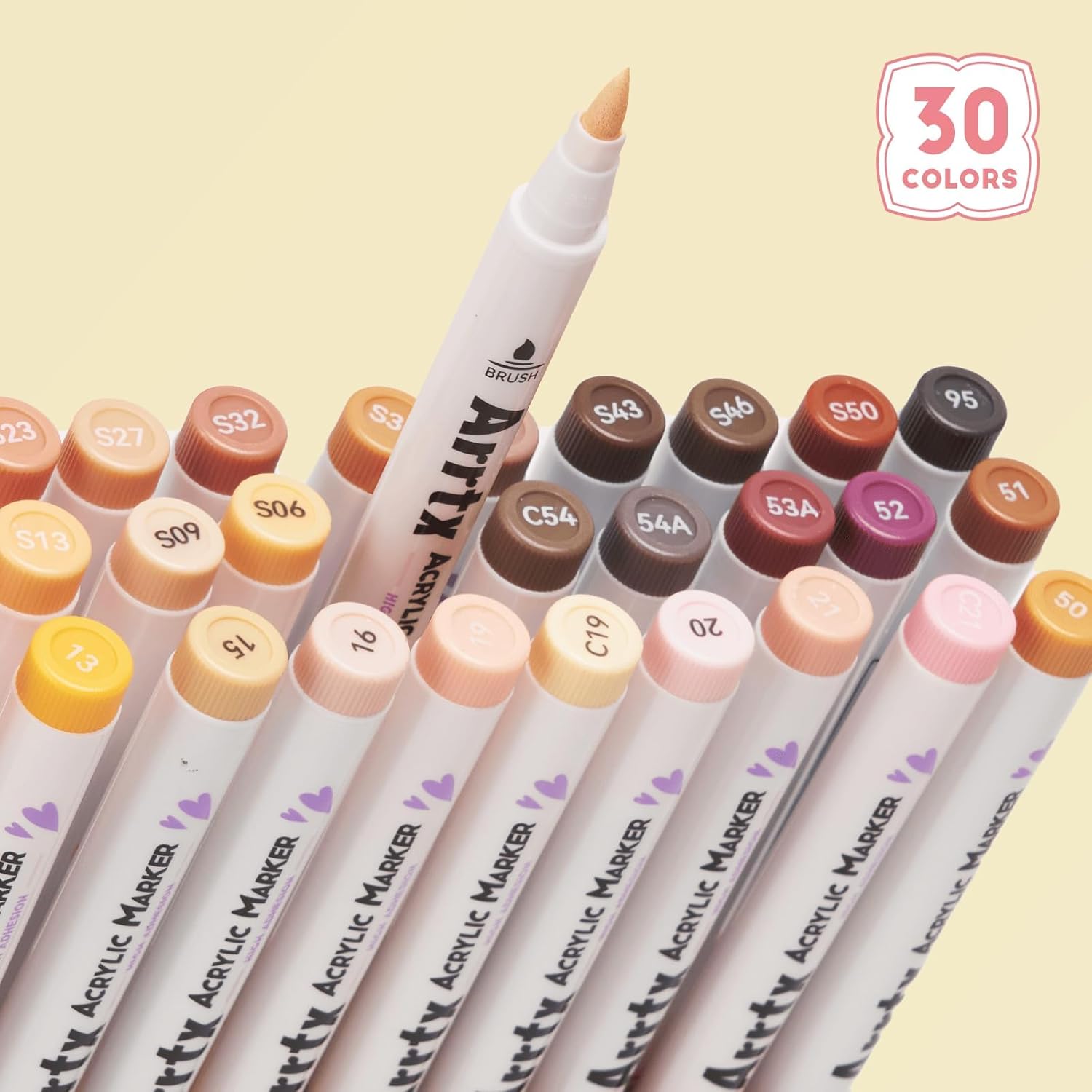 - Arrtx 30 skin color acrylic paint markers set: These skin color markers are perfect for flesh & face drawing, manga, portrait, illustration, sketching and other artistic creations. ---Warmly tips: Please tighten the cap and place the pen with the tip facing down if you don't use them.