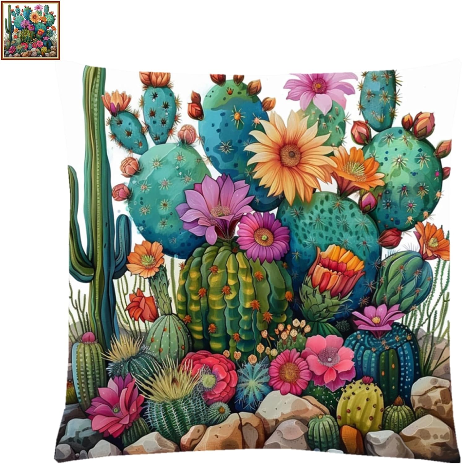 Fanxvivy Stamped Cross Stitch Kits for Adults Beginners Pillow Needlepoint Kit with Embroidery Pattern Needlework Kit Prestamped Stitches Kit 11CT Cross Stitching-Succulents 18x18 inch