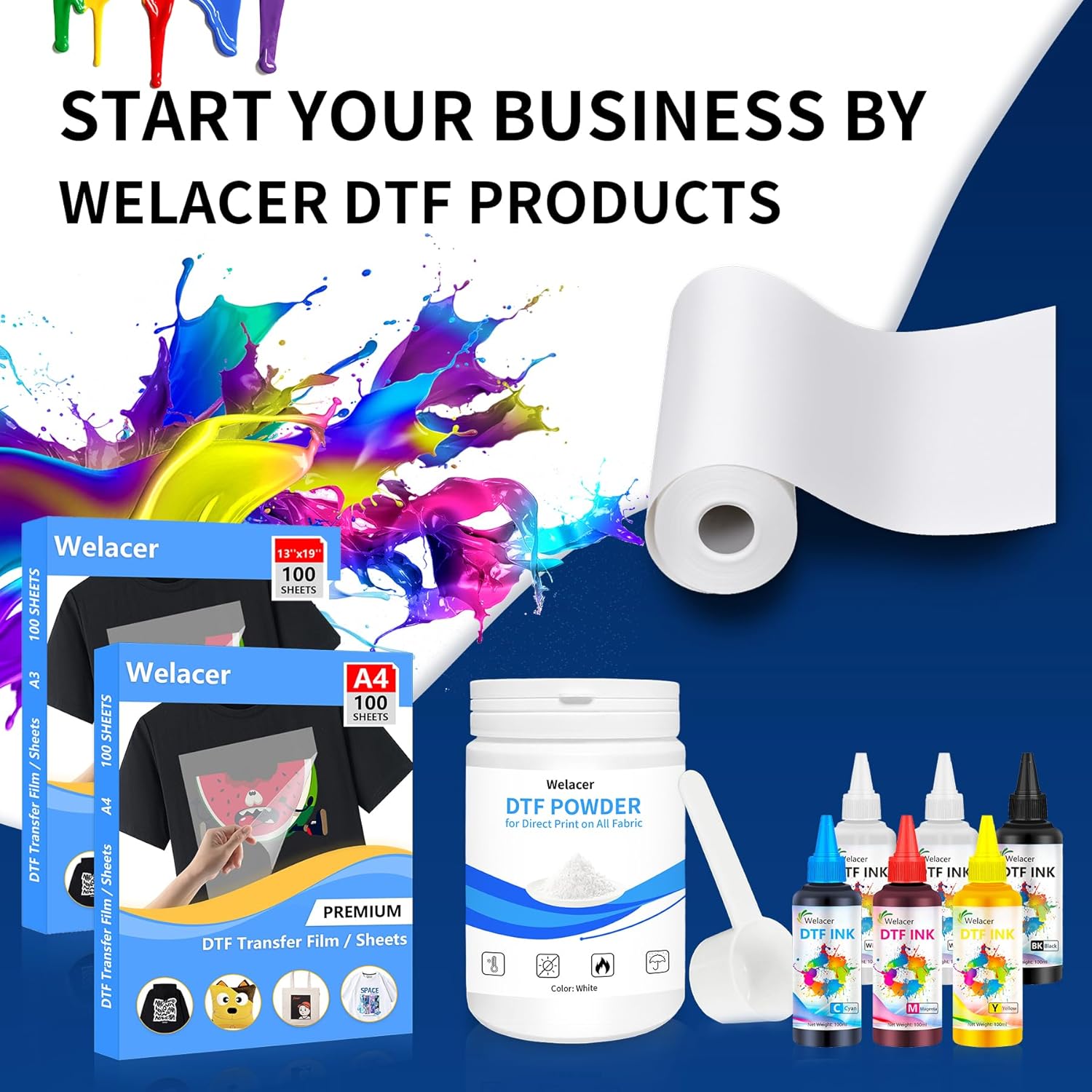 - YOU WILL GET. The DTF transfer Ink for Conversation kit include: 500ml of black, ICC Profile. Work with Welacer DTF transfer film and DTF Powder. Usually, the ratio of color ink to white ink usage is 3:1, so you can choose our 500ml white DTF ink for you.