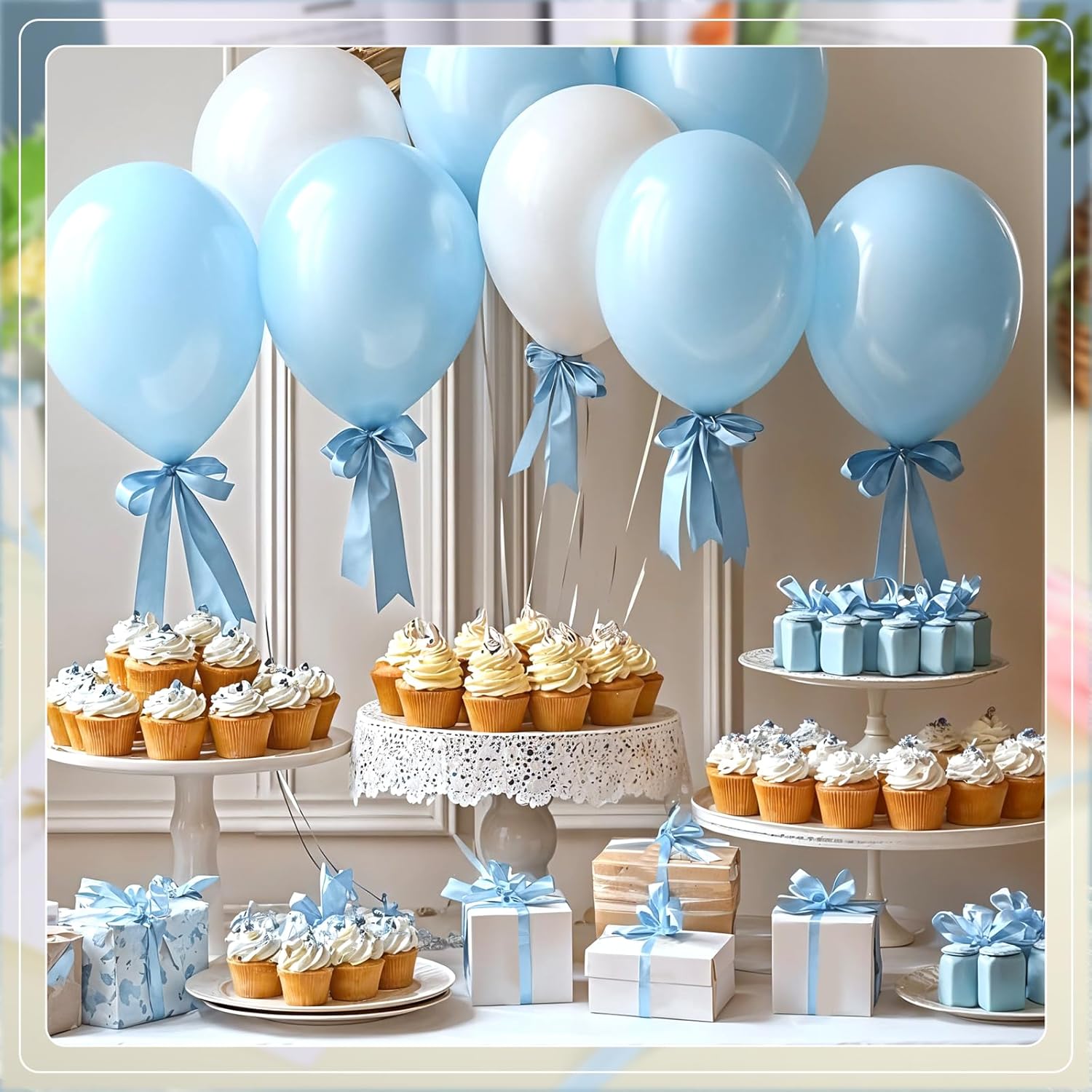120 Yards Blue Ribbon 3/8 Inch Light Baby Blue Ribbon Thin Crafts Satin Ribbons for Baby Shower Cake Bows Hair Wedding Gift Wrapping Basket String Cake Christmas Decorations